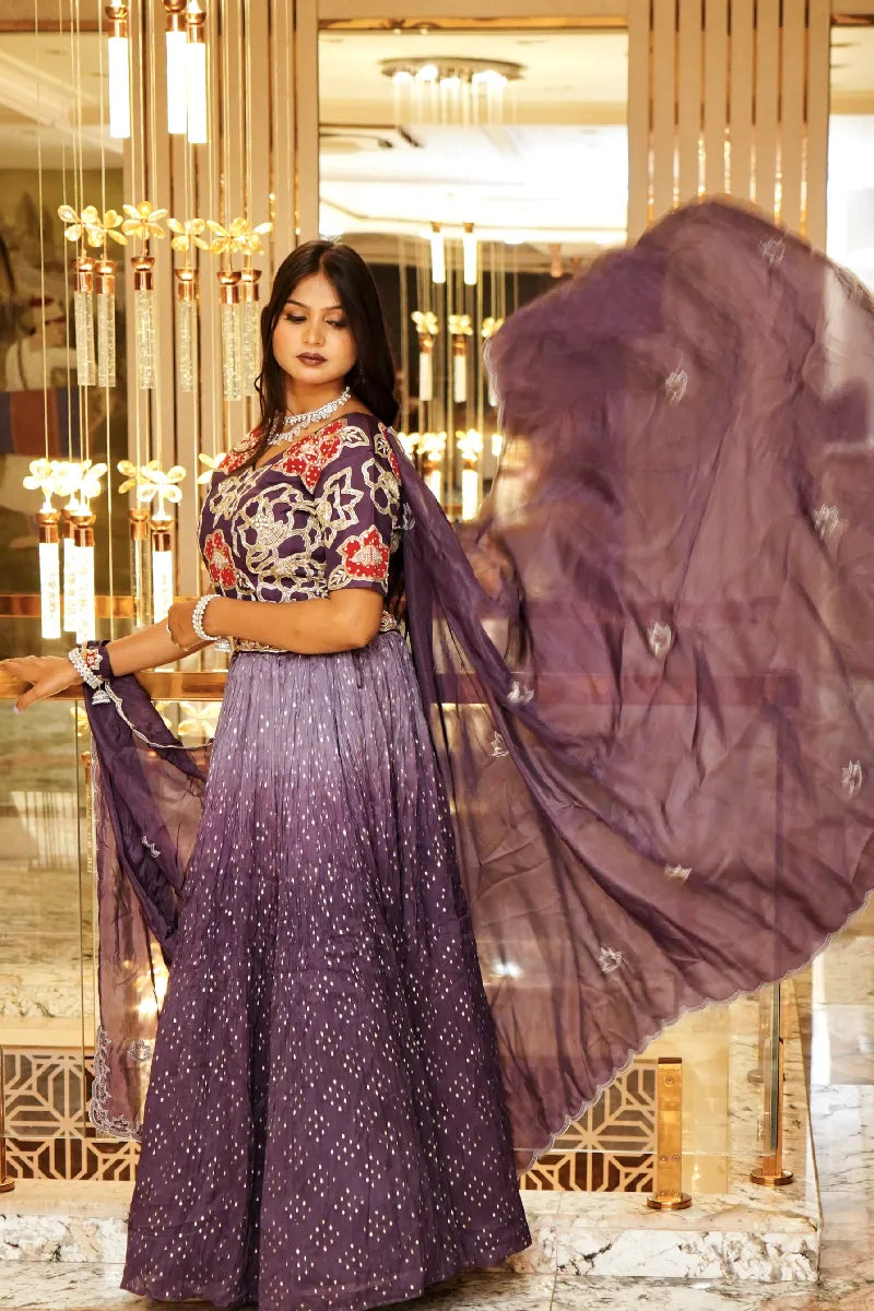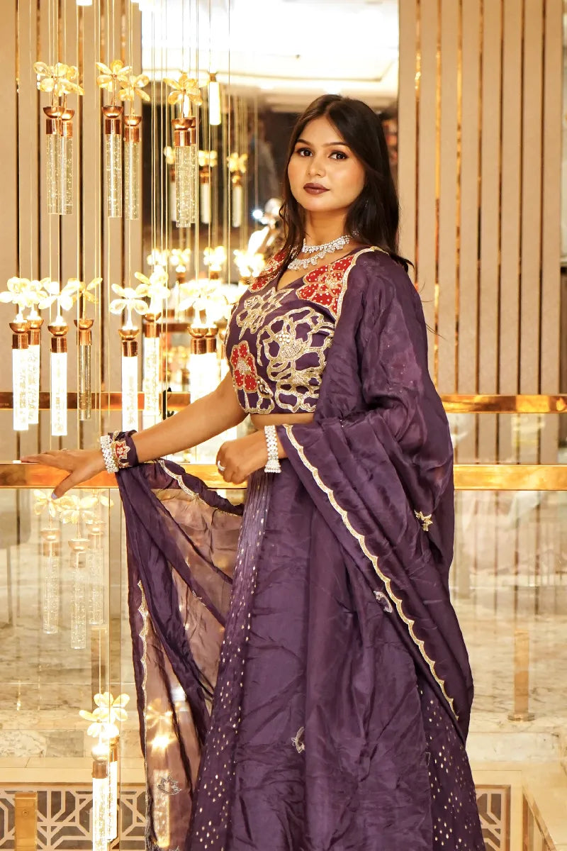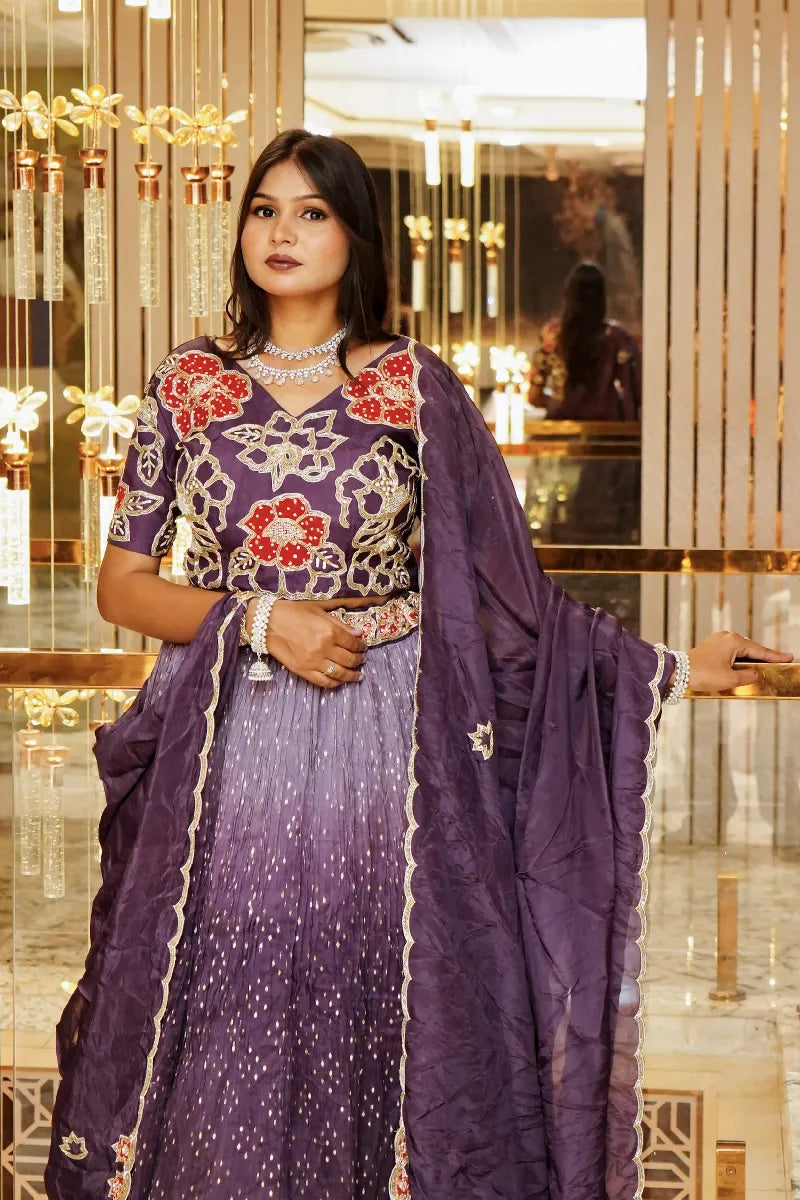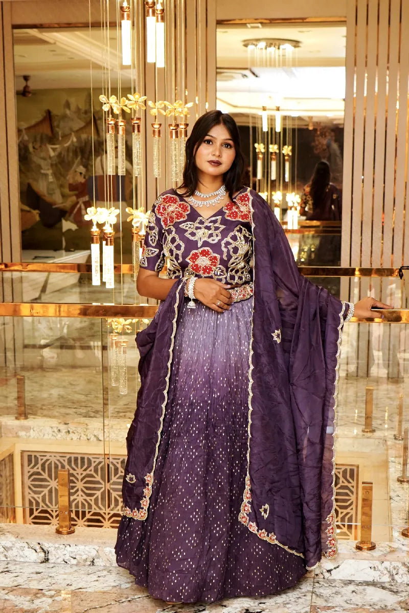 3PC DESIGNER PURPLE COLOUR CROPTOP LEHENGA