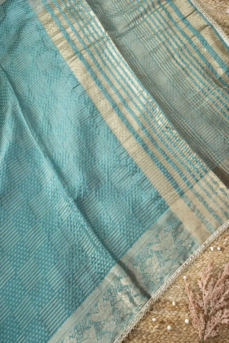 - Saree Details : Saree Fabric: Dola Silk | Blouse Fabric: Dola Silk | Saree Work: Golden Zari Flower Handwork Border | Blouse Work :Brocket Blouse Work | Saree Color: Aqua Blue | Blouse Color: Aqua Blue