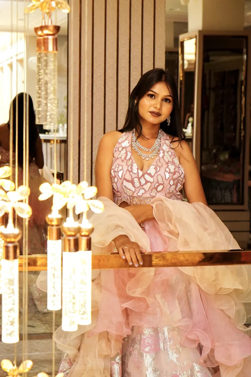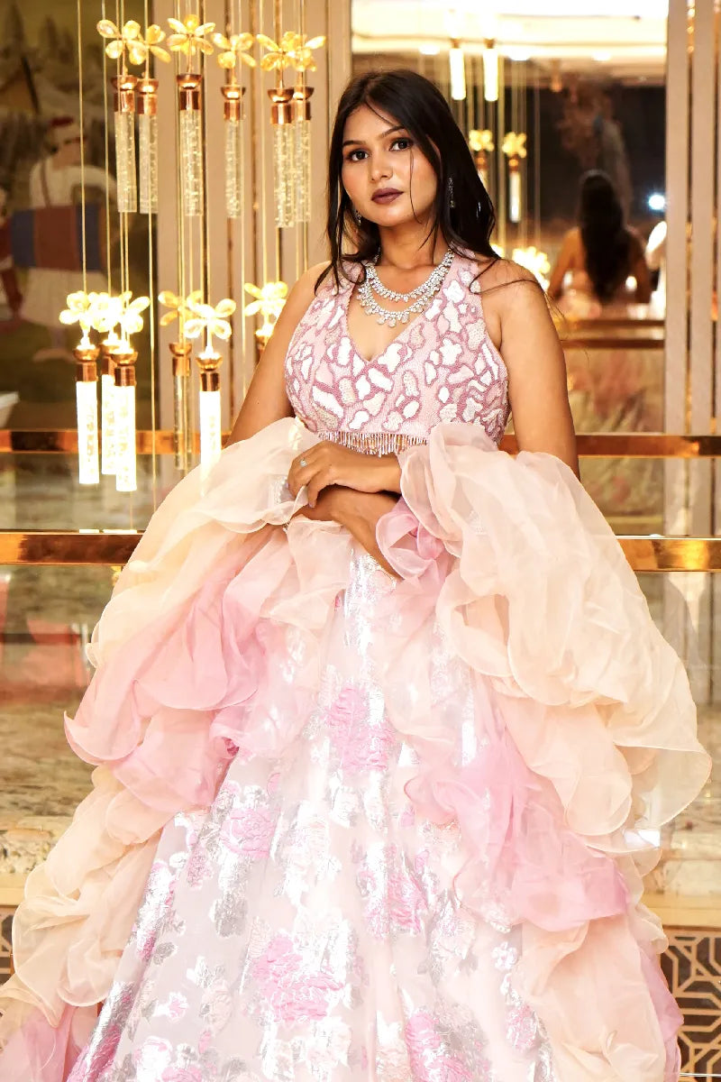 BABY PINK COLOR THREE PIECE DESIGN INDO-WESTERN LEHENGA