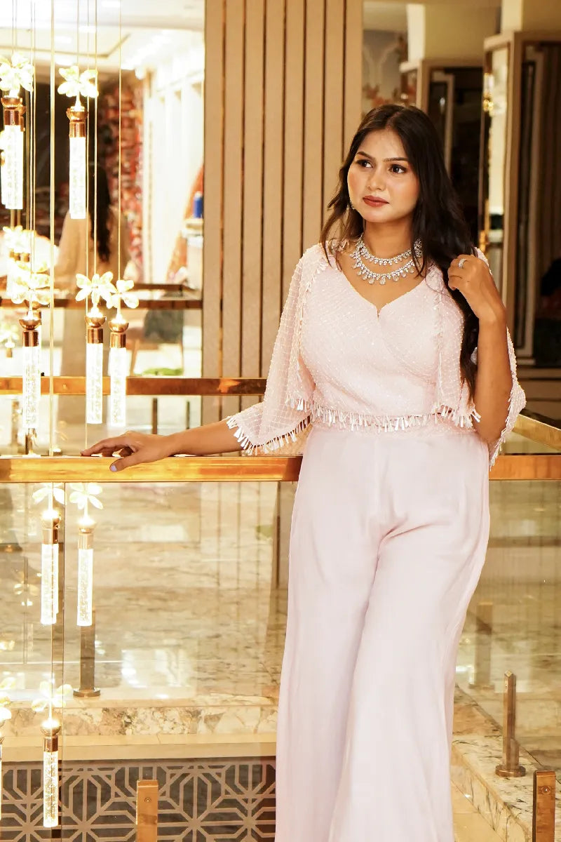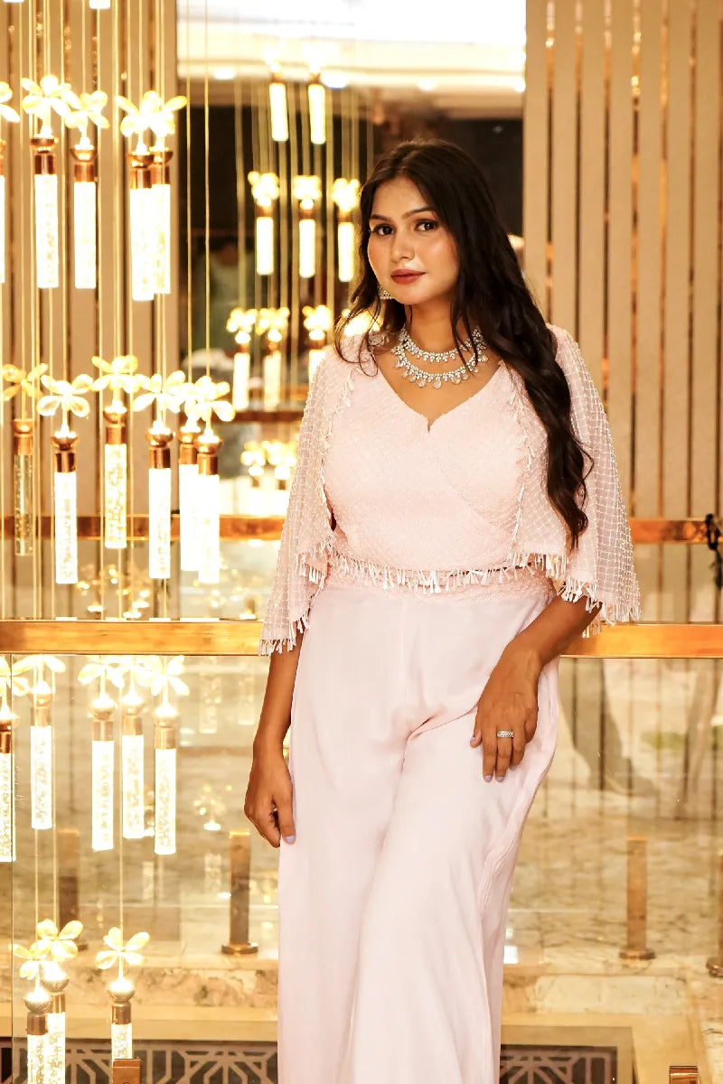 BABY PINK COLOR THREE PIECES CROP TOP DESIGN INDO-WESTERN