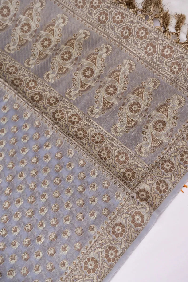 Top Fabric : Banarasi Cotton Silk | Top Length : 2.5 Mtr | Top Color : Grey | Top Work : Resham Booti Work