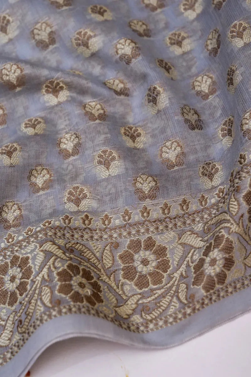 Dupatta Fabric : Banarasi Cotton Silk | Dupatta Length : 2.5 Mtr | Dupatta Color: Grey | Dupatta Work : Resham Booti Anchal Border