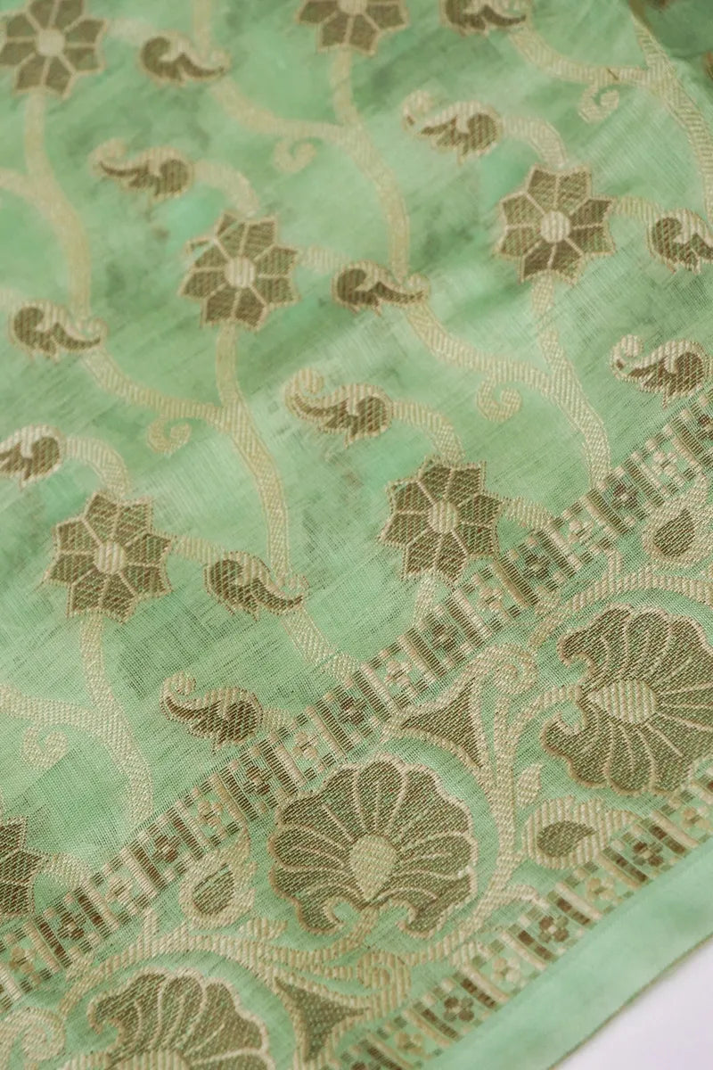 BANARASI COTTON SILK MINT GREEN COLOR UNSTITCHED SUIT