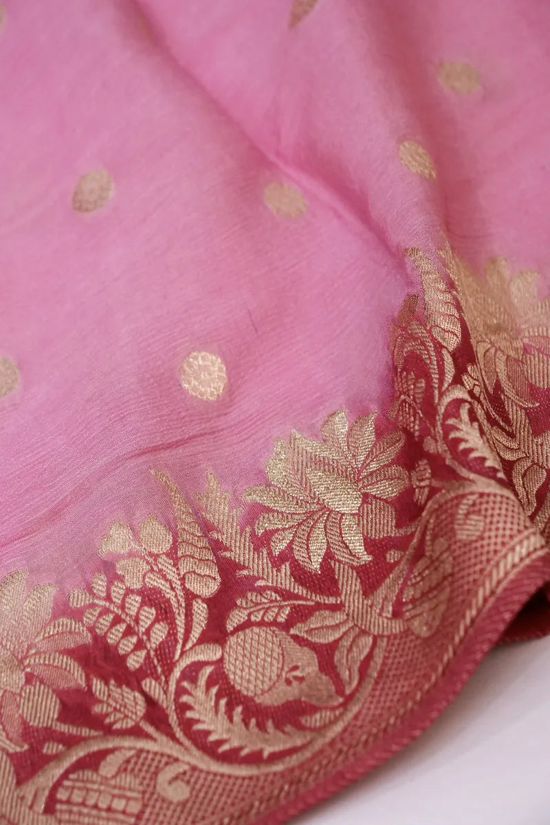 Dupatta Fabric : Banarasi Chinnon Silk | Dupatta Length : 2.5 Mtr | Dupatta Color: Pink With Pastel Maroon | Dupatta Work : Jacquard Weaving