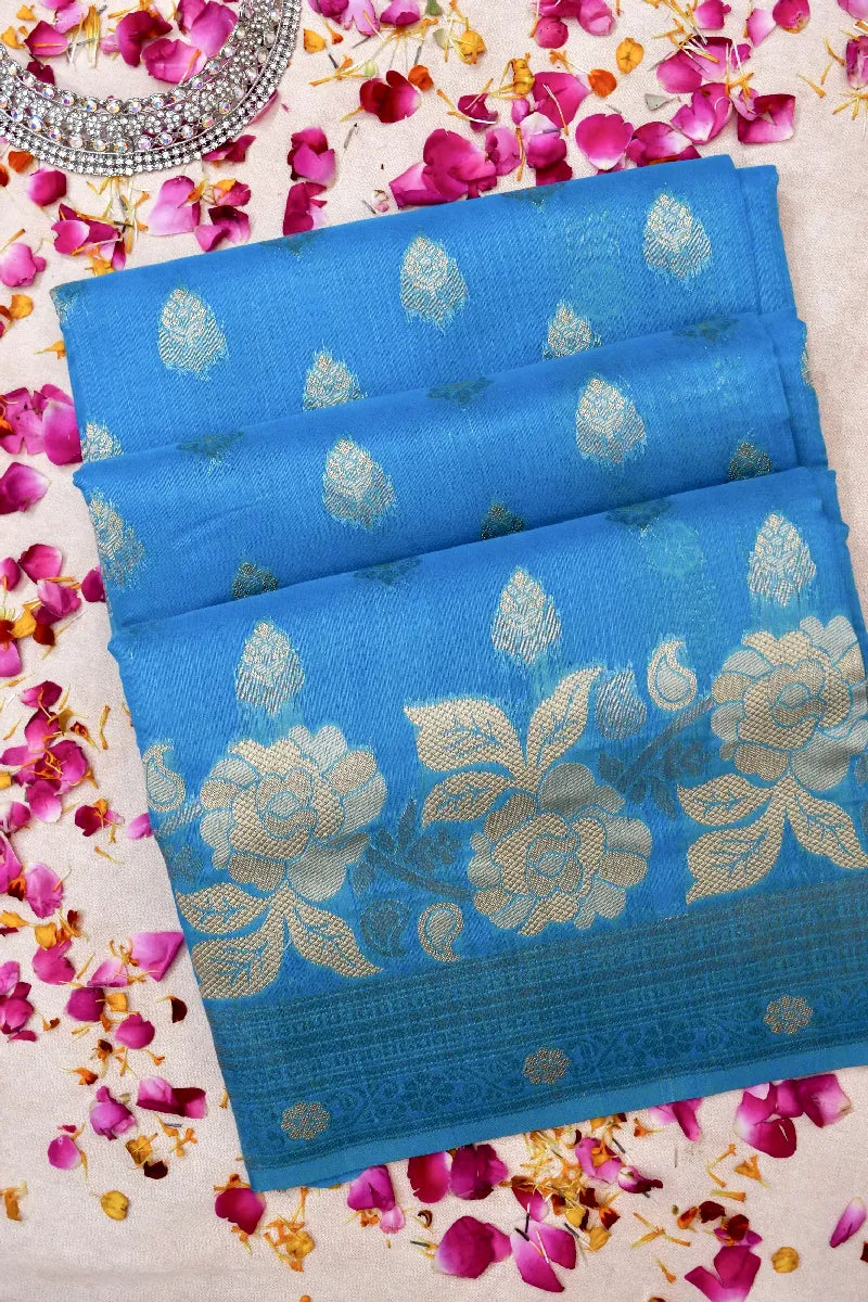BANARASI FIROZI COLOR SIKO COTTON SAREE
