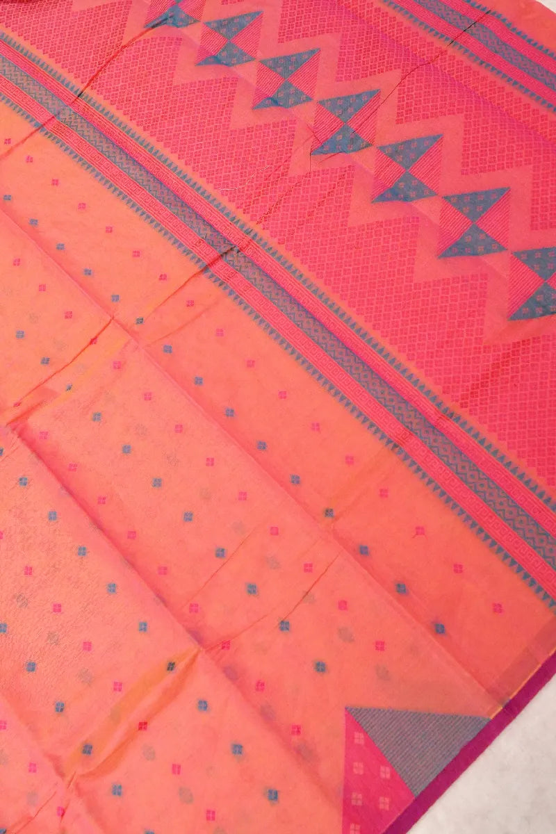 - Saree Details: Saree Fabric: Pure Cotton | Blouse Fabric: Pure Cotton | Saree Work: Booti Desine With Multi Color Resham Zari Work & Temple Border | Blouse Work: Not Available | Saree Color: Peach Color | Blouse Color: Not Available |