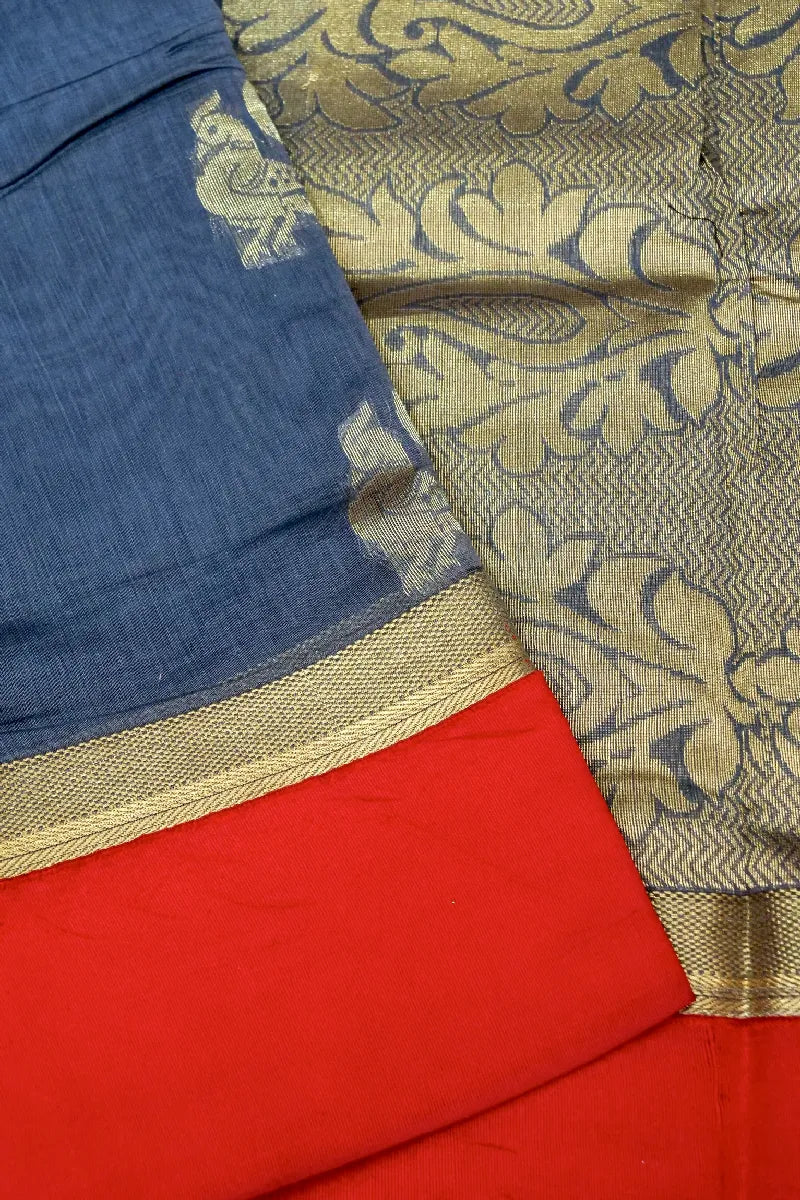 - Saree Details : Saree Fabric :- Siko Cotton | Blouse Fabric :- Siko Cotton | Saree Work :- Figure Boota Design With Zari Hand Work & Plain Contrast Border | Blouse Work: Grey Color With Zari Work & Red Border | Saree Color: Grey Color With Red Border | Blouse Color : Grey Color With Red Border |