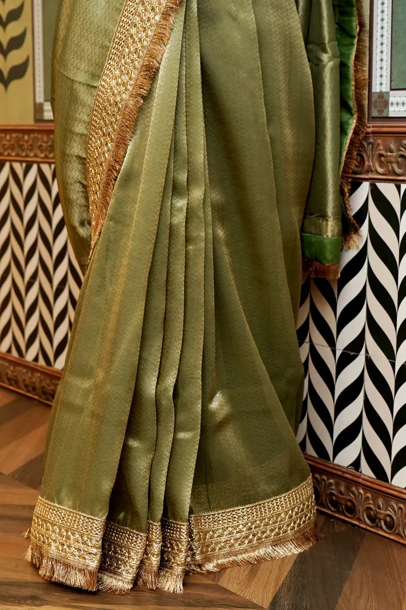 BANARASI KORA PISTA GREEN COLOR TISSUE WEAVING SAREE