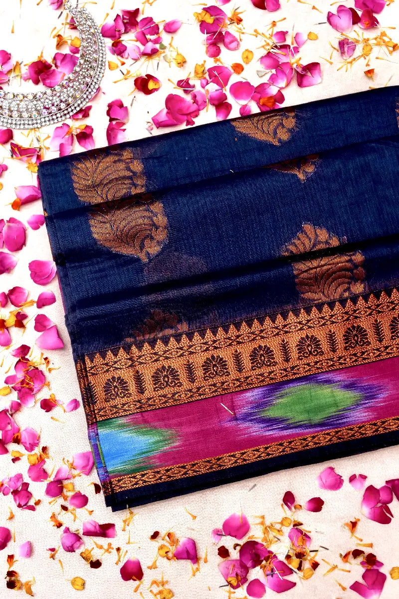 BANARASI NAVY BLUE COLOR SIKO COTTON SAREE