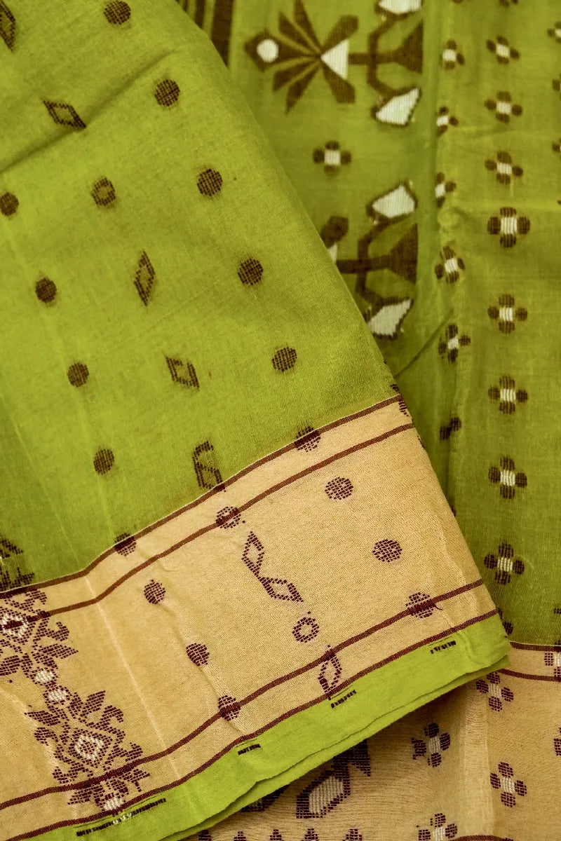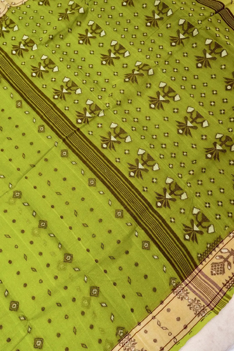 BANARASI PISTA GREEN COLOR SIKO TAANT COTTON SAREE