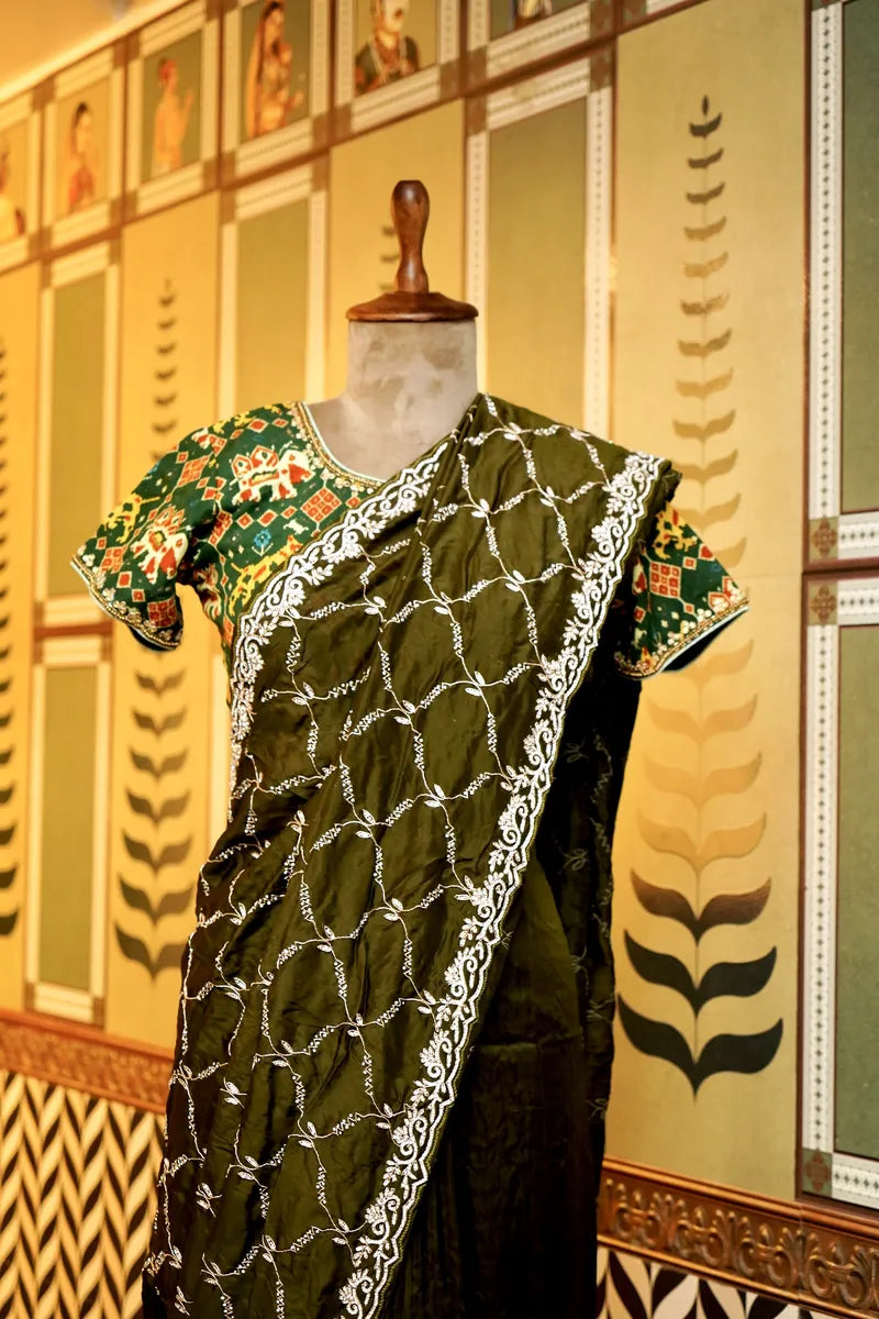 BANARASI PURE CREPE MEHNDI COLOR FANCY SAREE