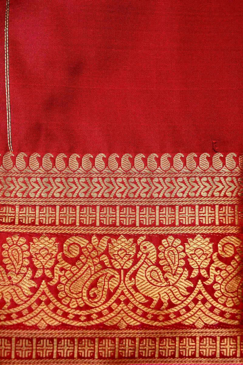 Saree Details : Saree Fabric: Banarasi Satin Silk | Blouse Fabric: Banarasi Satin Silk | Saree Work: Golden Zari Zoota Border & Anchal | Blouse Work: Plain Golden Zari Border | Saree Color: Green With Maroon | Blouse Color: Maroon |