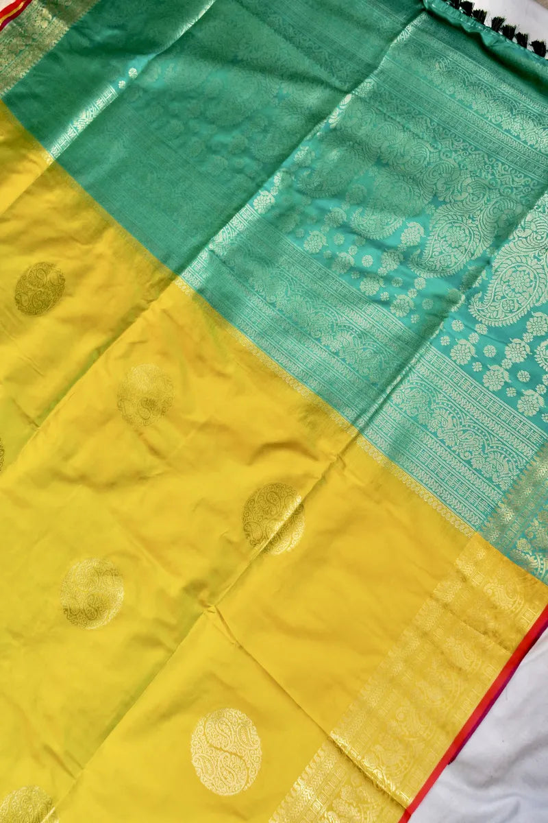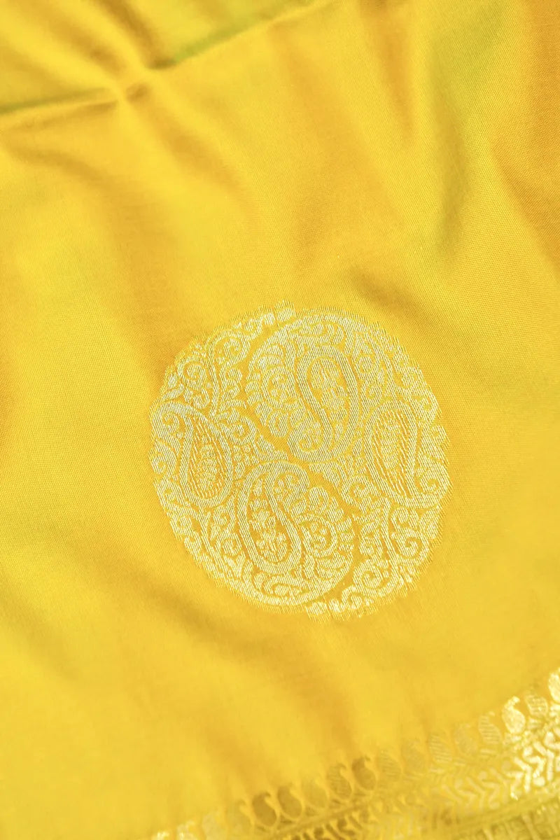 BANARASI SATIN LEMON WITH RAMA GREEN COLOR SILK SAREE