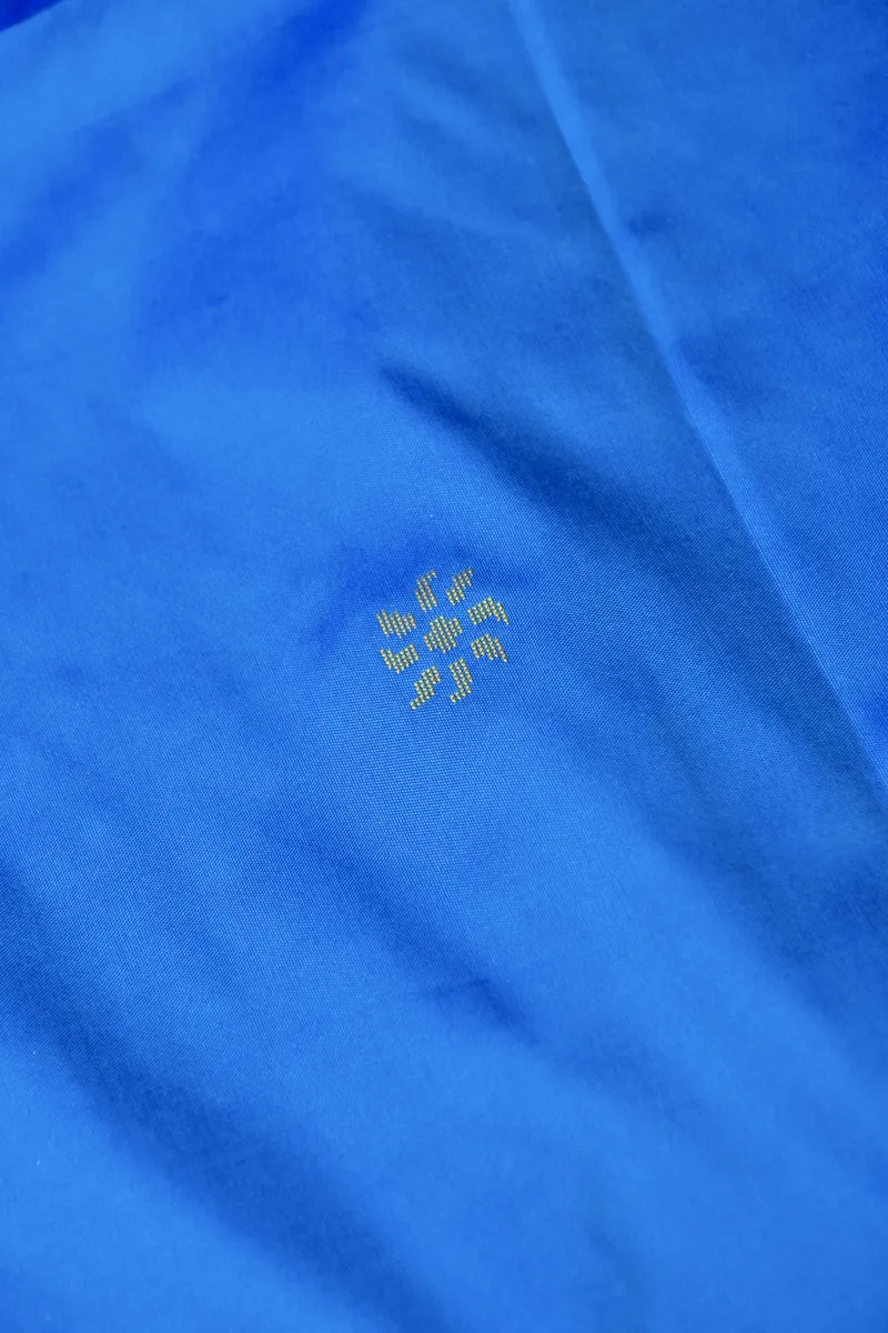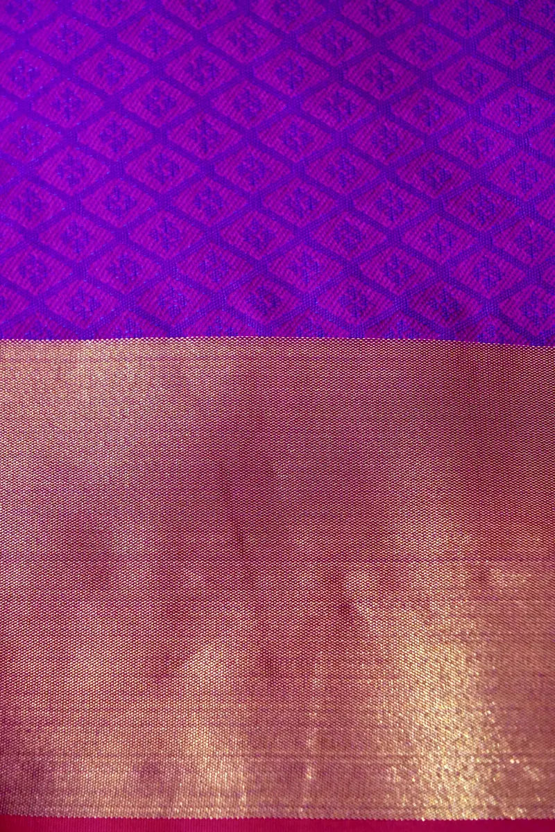 Saree Details : Saree Fabric: Banarasi Satin Silk | Blouse Fabric: Banarasi Satin Silk | Saree Work: Golden Zari Meenakari Border & Anchal | Blouse Work: Brocket Golden Zari Border | Saree Color: Peacock Blue With Purple | Blouse Color: Purple |