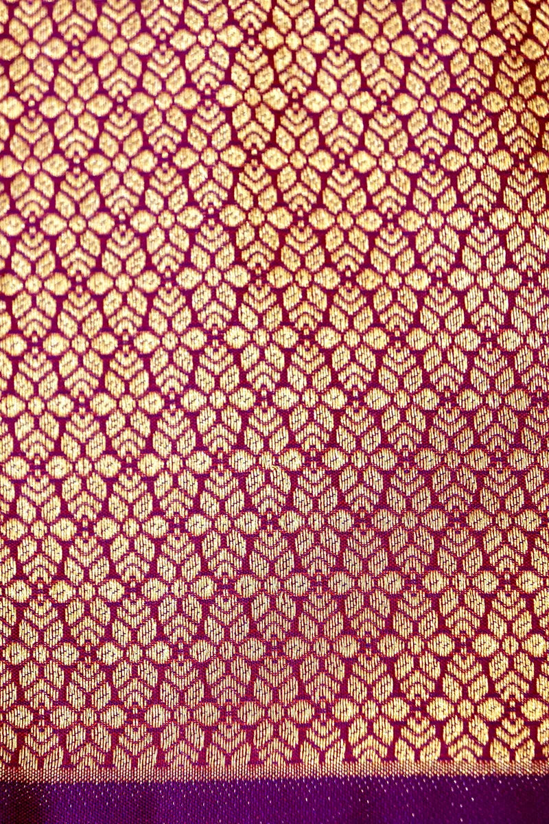 - Saree Details : Saree Fabric: Banarasi Satin Silk | Blouse Fabric: Banarasi Satin Silk | Saree Work: Golden Zari Boota Border & Anchal | Blouse Work: Brocket Golden Zari Border | Saree Color: Purple | Blouse Color: Purple |
