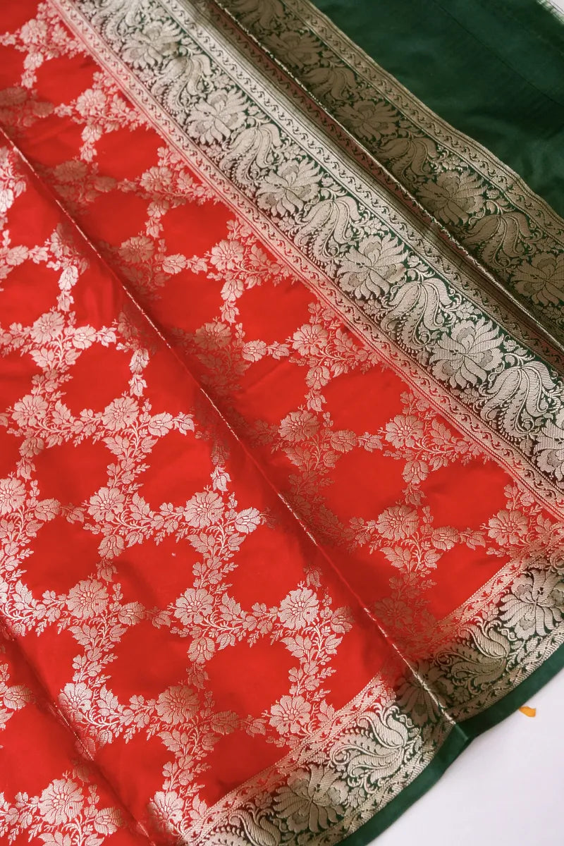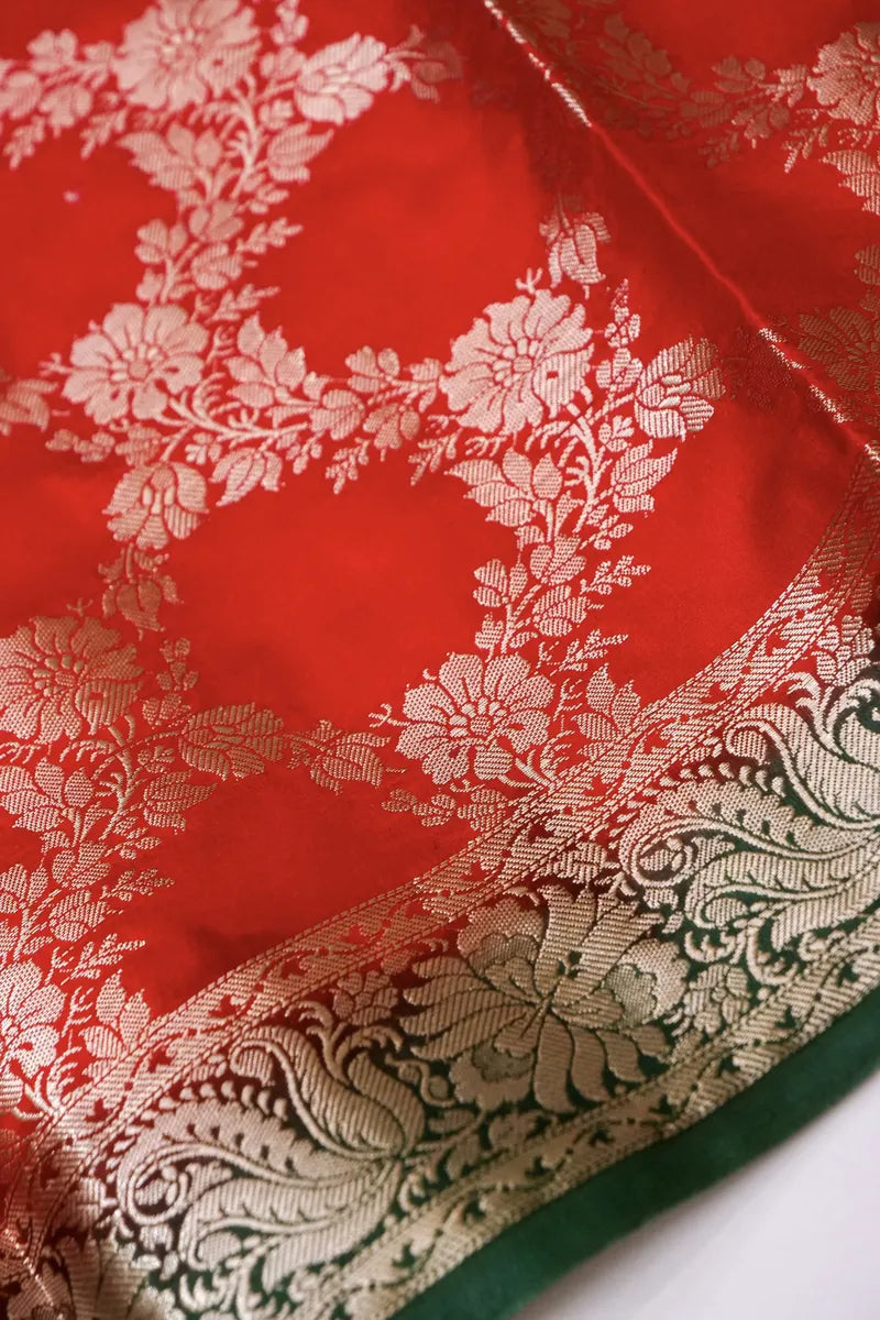 Dupatta Fabric : Banarasi Silk | Dupatta Length : 2.5 Mtr | Dupatta Color: Red| Dupatta Work : Golden Zari Jaal