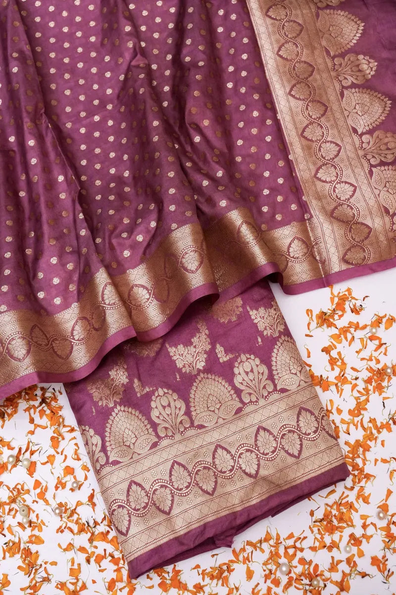 Top Fabric : Banarasi Silk |Top Length : 2.5 Mtr | Top Color : Onion | Top Work : Golden Zari Flower Booti With Border
