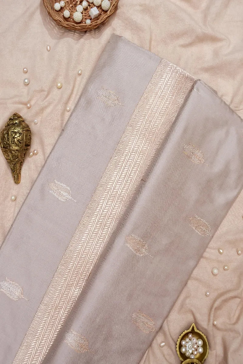 Saree Details : Saree Fabric :- Banarasi Single Katan Rich Zari | Blouse Fabric :- Banarasi Single Katan Rich Zari | Saree Work :- Allover Boota With Golden Zari Handwork | Blouse Work :- Golden Zari Border | Saree Color:- Beige Color | Blouse Color :- Beige Color