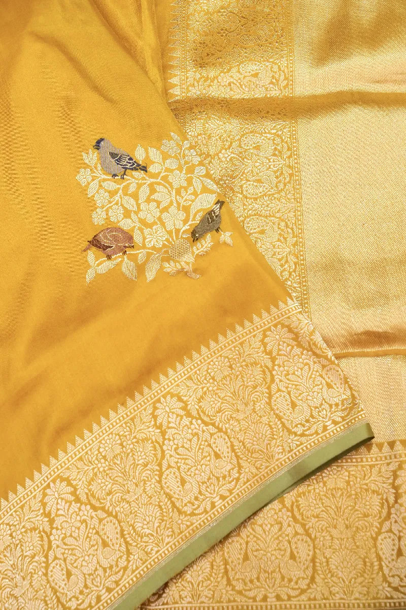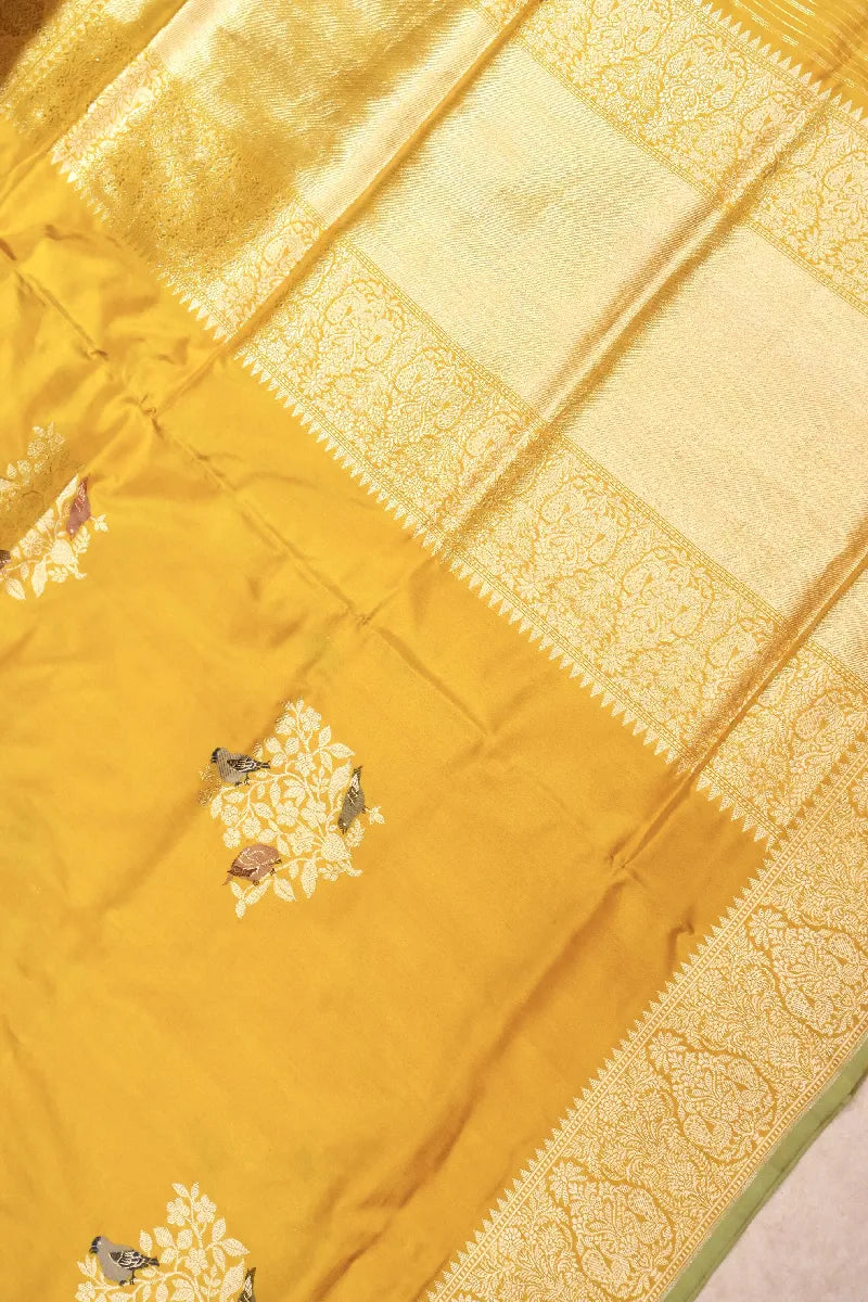 - Saree Details : Saree Fabric :- Banarasi Single Katan Rich Zari | Blouse Fabric :- Banarasi Single Katan Rich Zari | Saree Work :- All Over BOOTA Figure Concept Golden Zari Handwork | Blouse Work :- Golden Zari Border| Saree Color:-MUSTARD YELLOW | Blouse Color :- MUSTARD YELLOW Color |