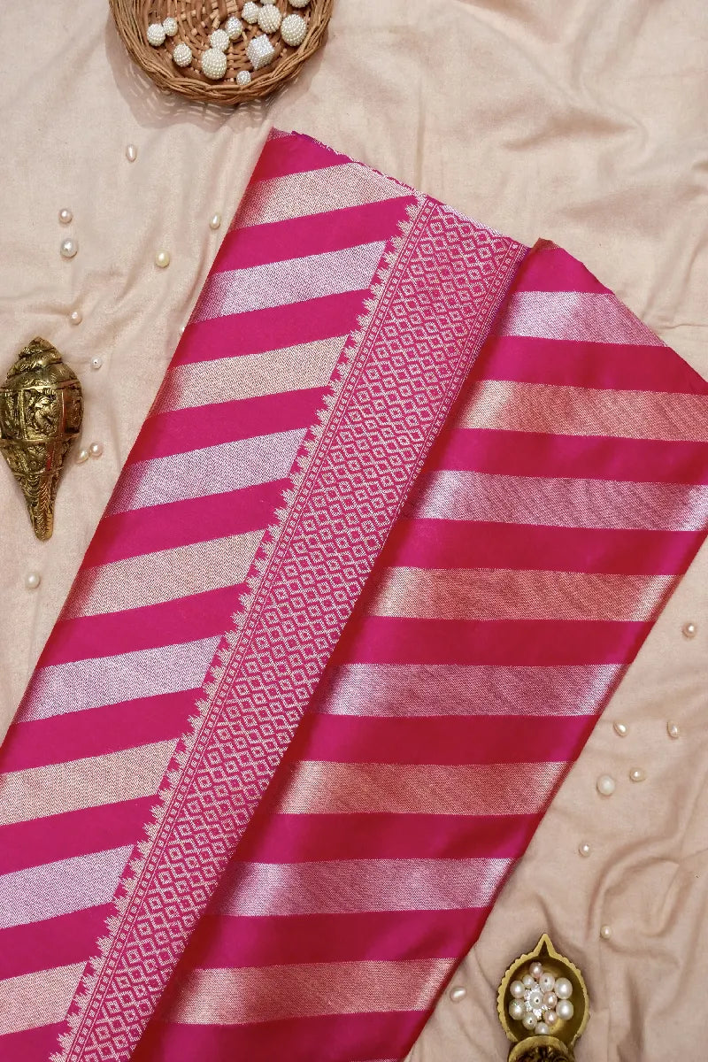 Saree Details : Saree Fabric :- Banarasi Single Katan Rich Zari | Blouse Fabric :- Banarasi Single Katan Rich Zari | Saree Work :- Leheriya Pattern Golden & Silver Zari Handwork | Blouse Work :- Leheriya Golden Zari Border | Saree Color:- PINK Color | Blouse Color :- PINK Color