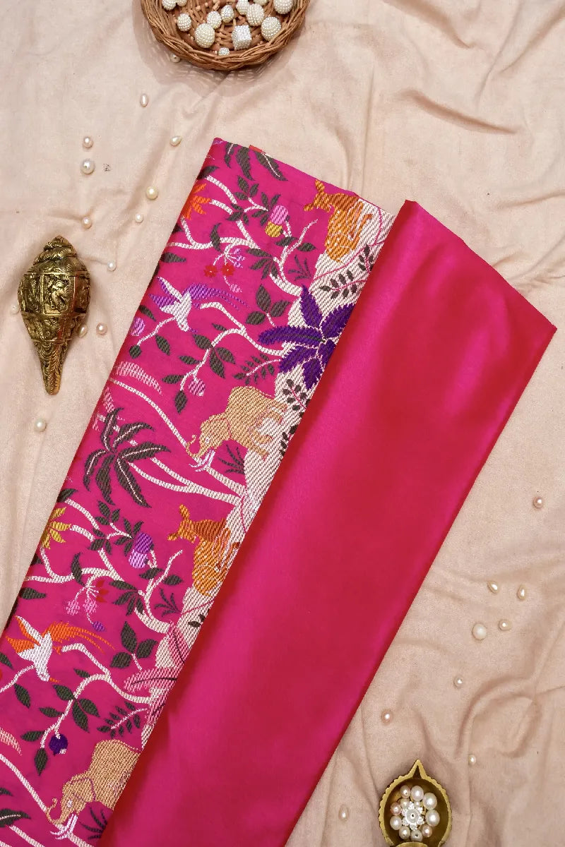BANARASI SINGLE KATAN RICH ZARI RANI COLOR SAREE