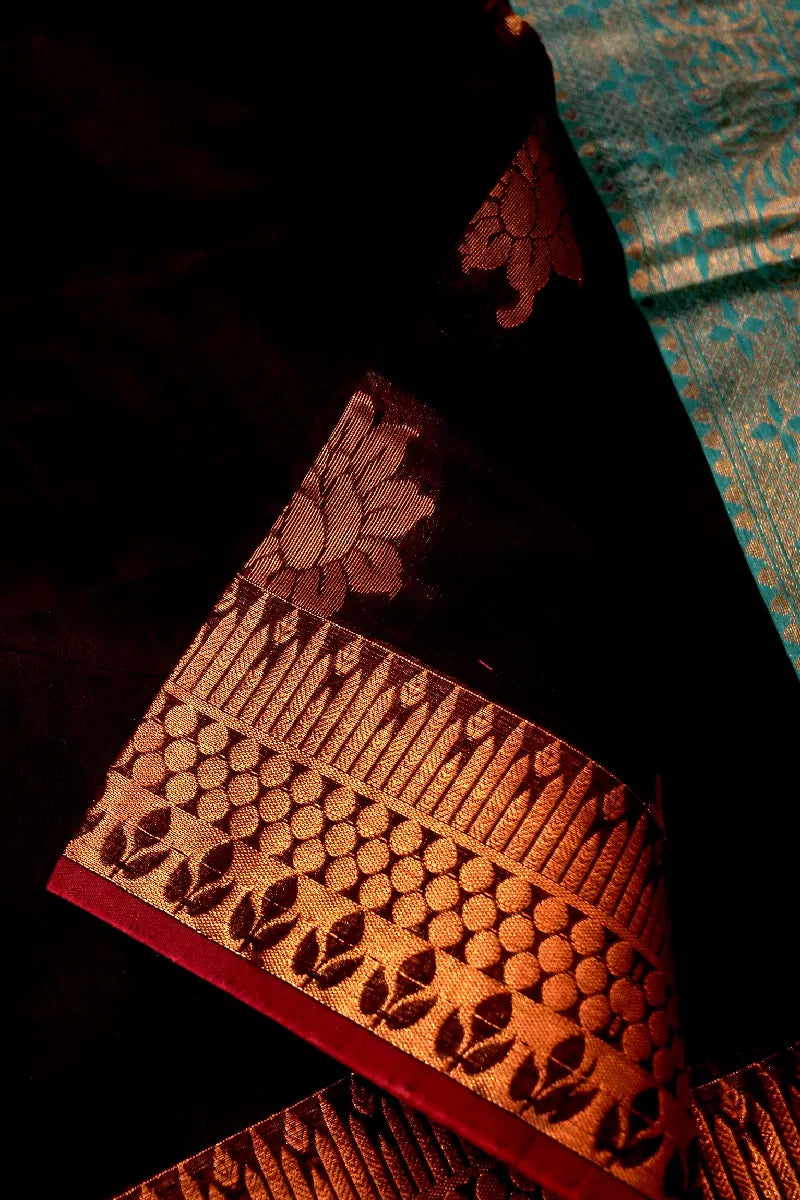 - Saree Details : Saree Fabric: Siko Cotton | Blouse Fabric: Siko Cotton | Saree Work:- Boota Design With Zari Work & Golden Zari Border | Blouse Work: Firozi Color With Golden Zari Border |