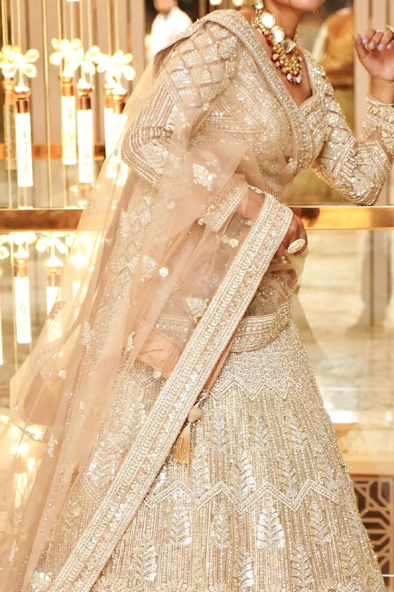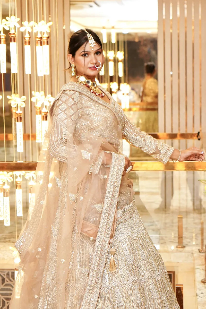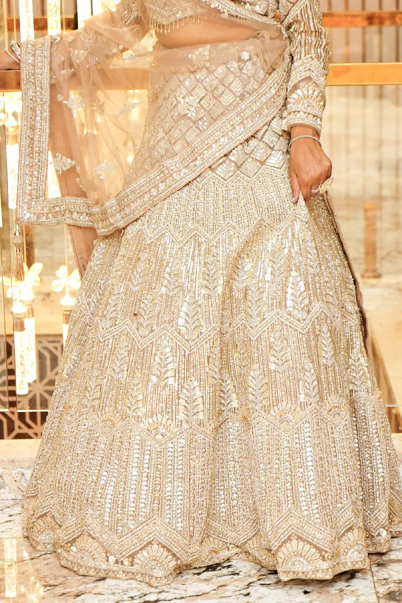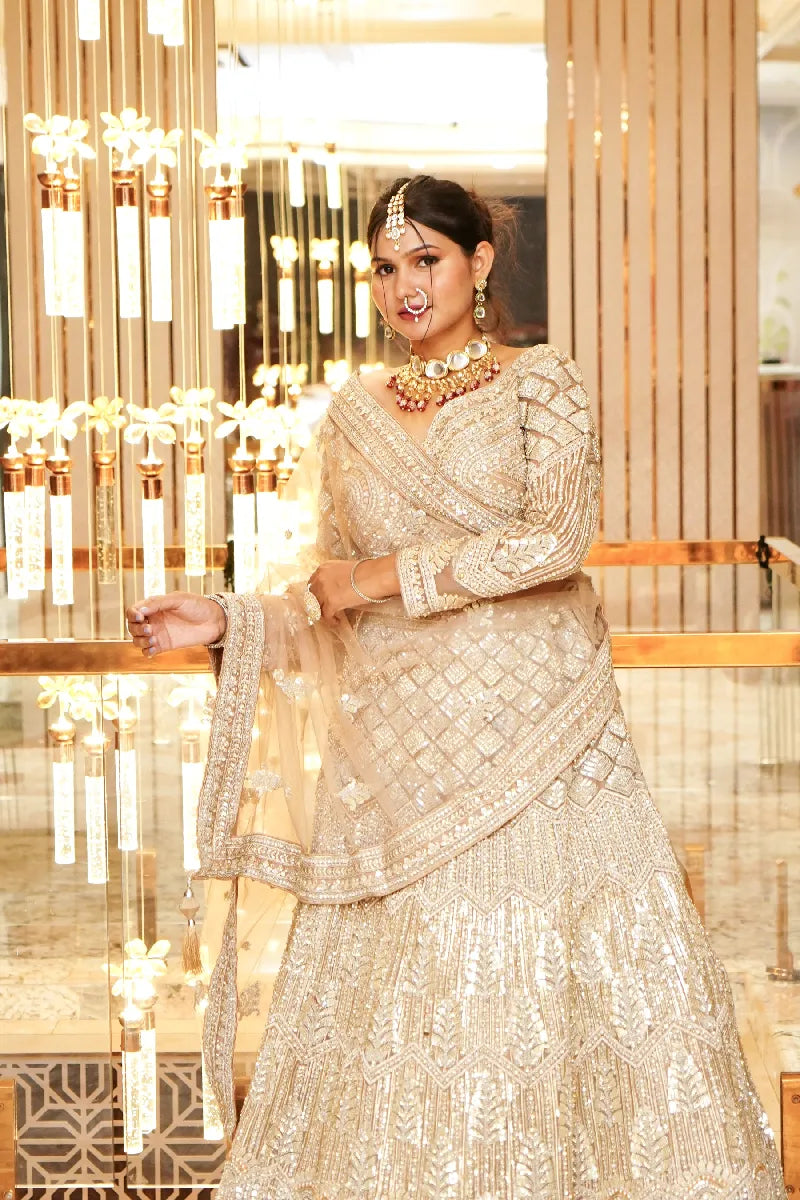 BEIGE COLOR THREE PIECES CROP TOP INDO WESTERN