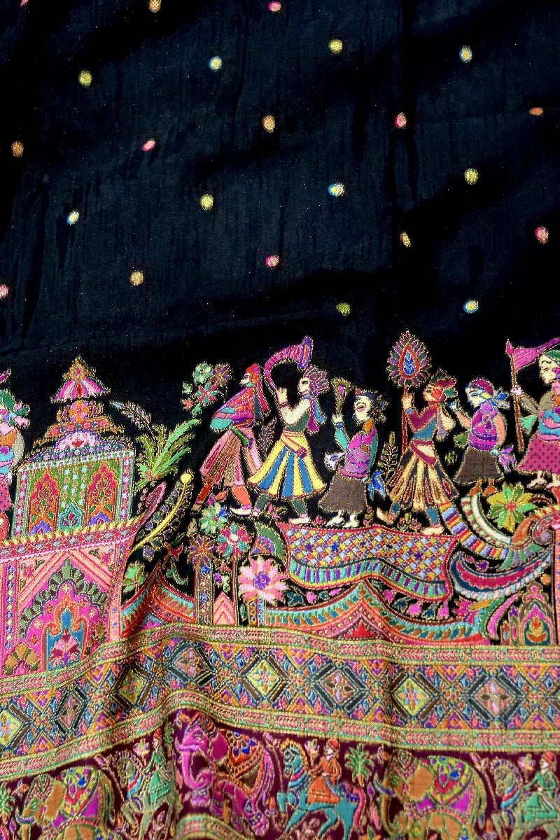 BLACK COLOR CREPE SILK PASHMINA SAREE