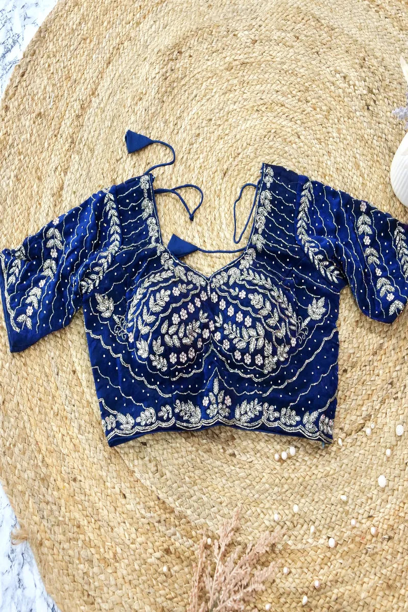 - Saree Details : Saree Fabric: Crepe | Blouse Fabric: Crepe | Saree Work:Plain Saree cutdana With Stone Handwork Border | Blouse Work Heavy Blouse (Stitched )Work | Saree Color:Blue Color | Blouse Color: Blue Color