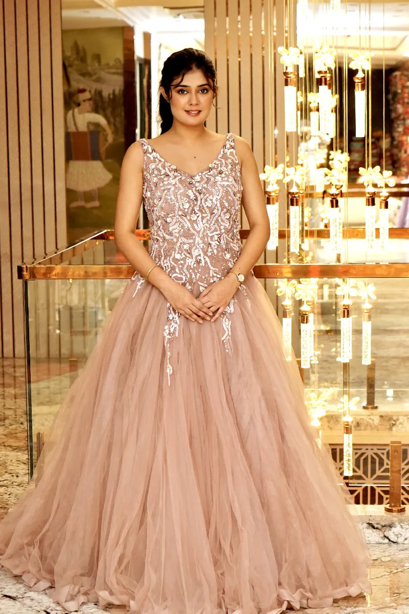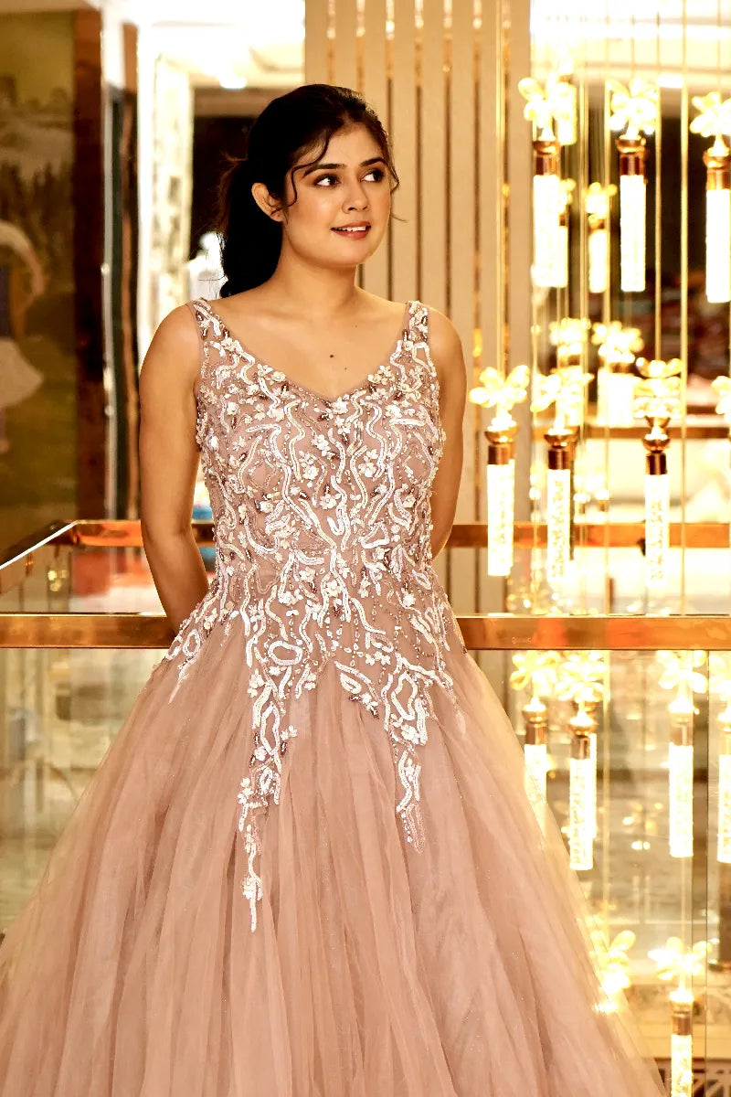 GLEAM & GRACE BRIDAL MAUVE PINK COLOUR DESIGNEER GOWN