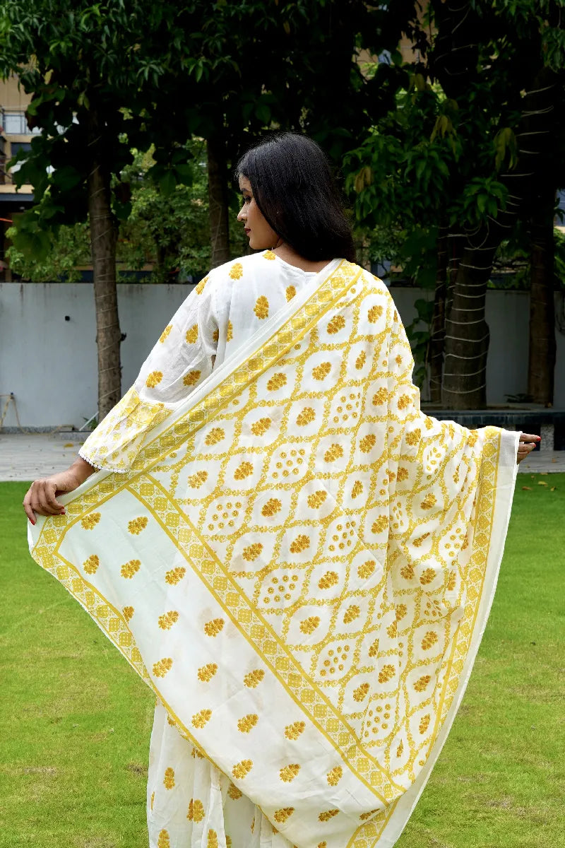 Dupatta Fabric : Cotton | Dupatta Length : 2.5 Mtr | Dupatta Color: White | Dupatta Work – All Over Floral Print