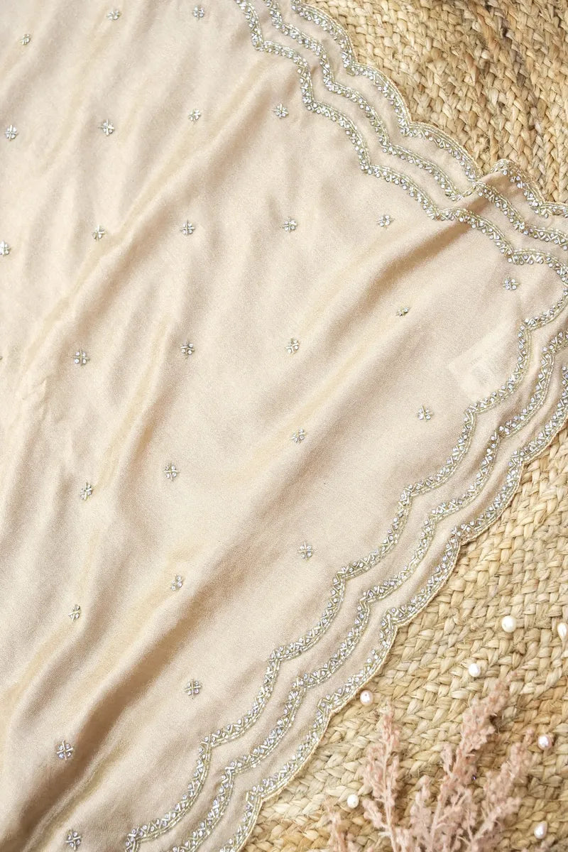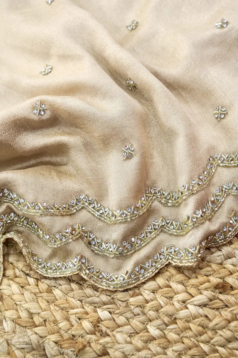 - Saree Details : Saree Fabric: Crepe | Blouse Fabric: Crepe | Saree Work: cutdana With Stone Booti Handwork Border | Blouse Work Heavy Blouse (Stitched )Work | Saree Color:Cream Color | Blouse Color: Cream Color