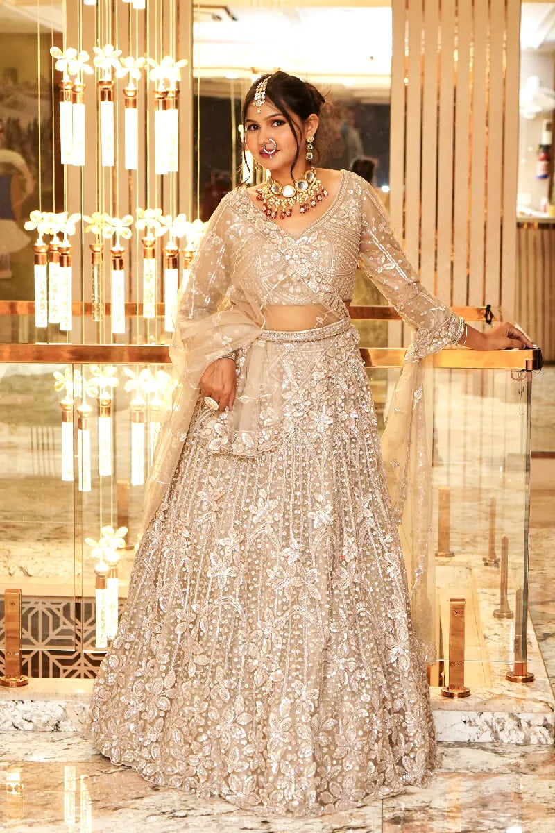 DESERT BROWN COLOR THREE PIECES CROP TOP LEHENGA