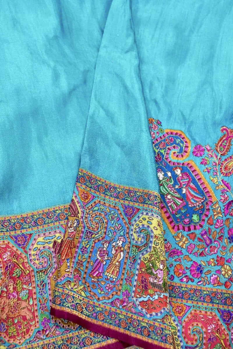 - Saree Details :Saree Fabric: Crepe Silk | Blouse Fabric: Crepe Silk | Saree Work: Plane Saree With Figure Concept Meenakari Border(Pashmina) | Blouse Work: Meenakari Booti With Meenakari Border | Saree Color: Firozi Color | Blouse Color: Firozi Color