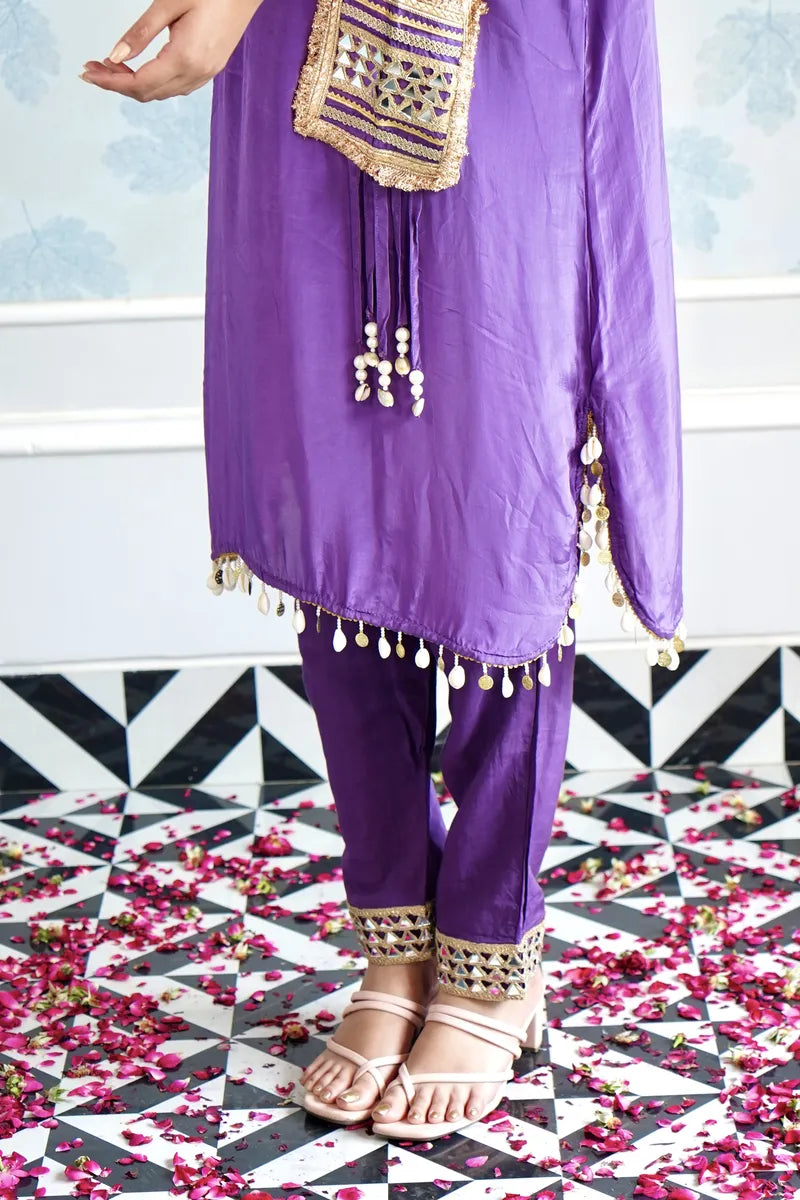 Top Fabric : Crep | Top Color : Purple | Top Work : Mirror Work On Neck With Sight Pocket On Kurta
