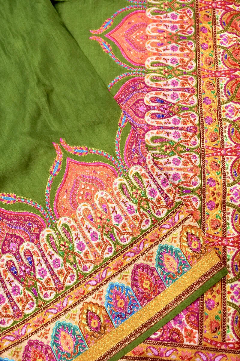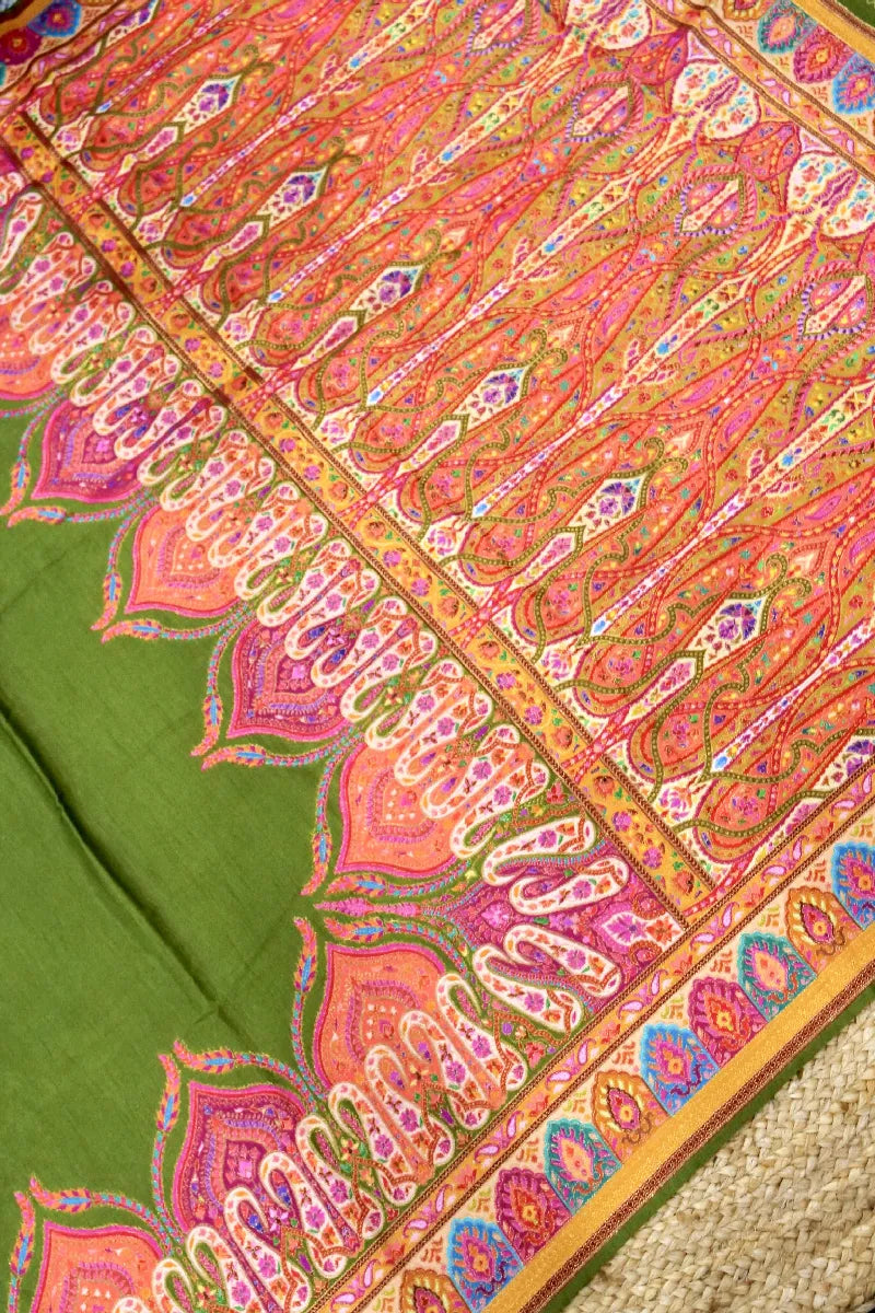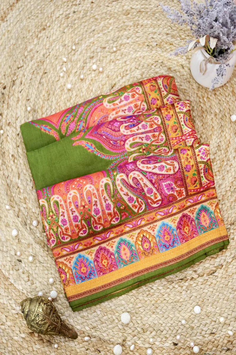 GREEN COLOR CREPE SILK PASHMINA SAREE