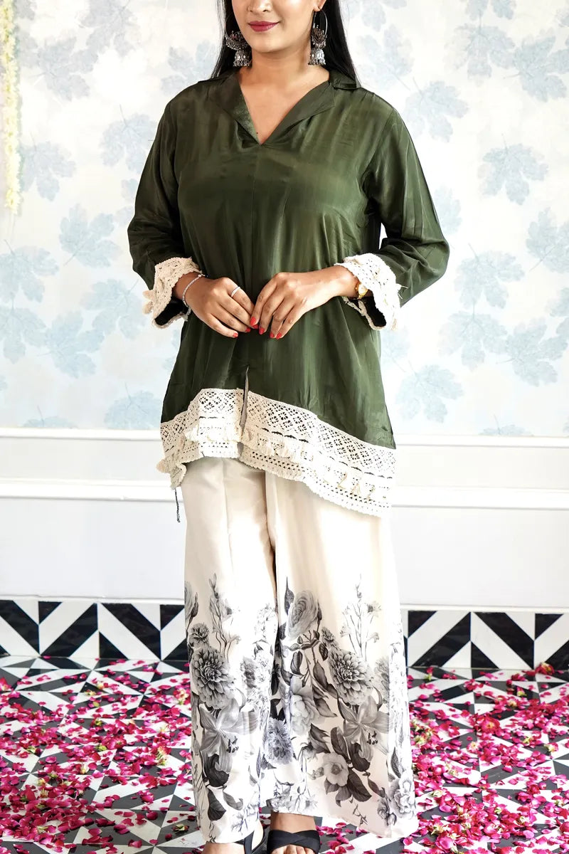 Top Fabric : Crepe Silk | Top Color : Mehandi Green | Top Work : Plain