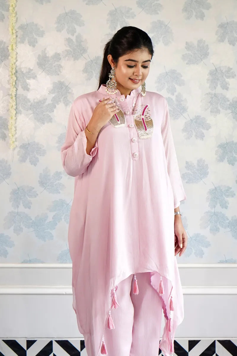 "ROSÉ ELEGANCE TASSEL CORD SET"