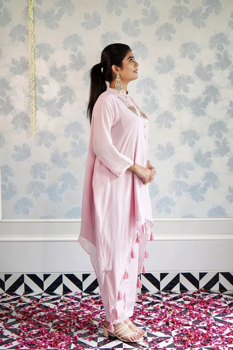 Top Fabric : Chiffon | Top Color : Baby Pink | Top Work : Hand Work On Neck