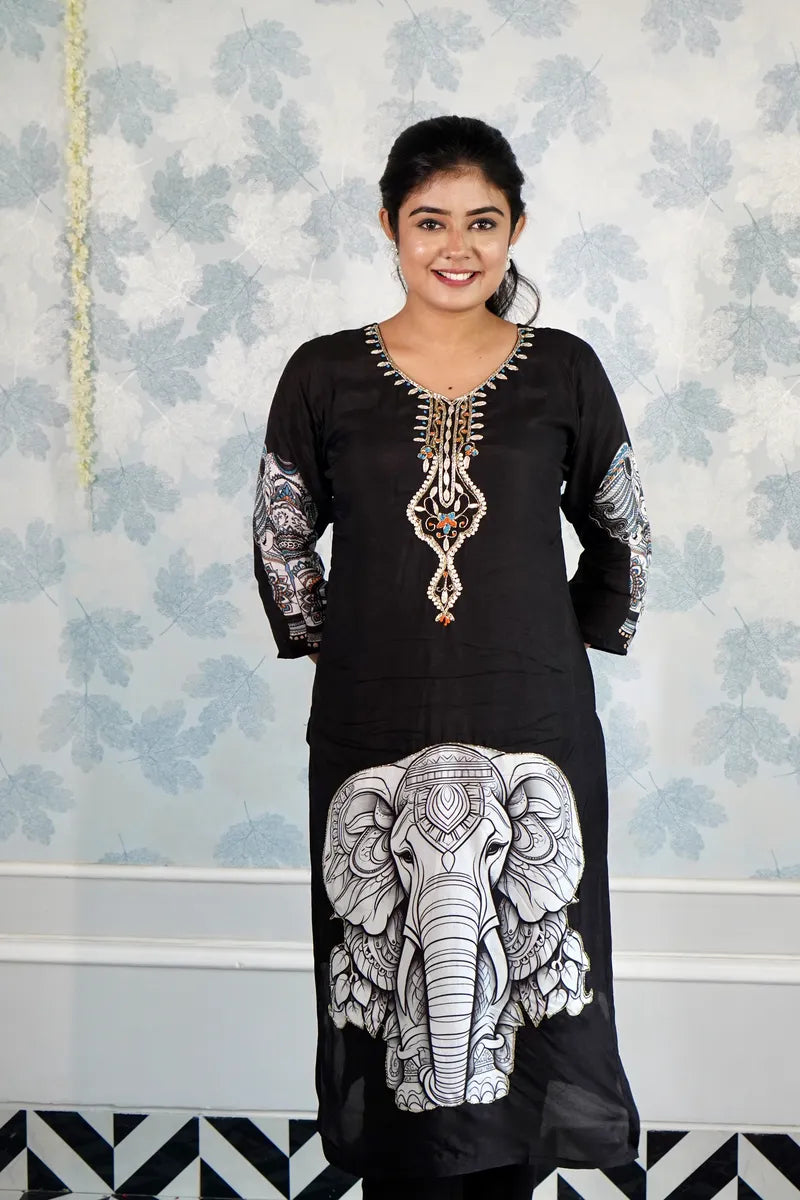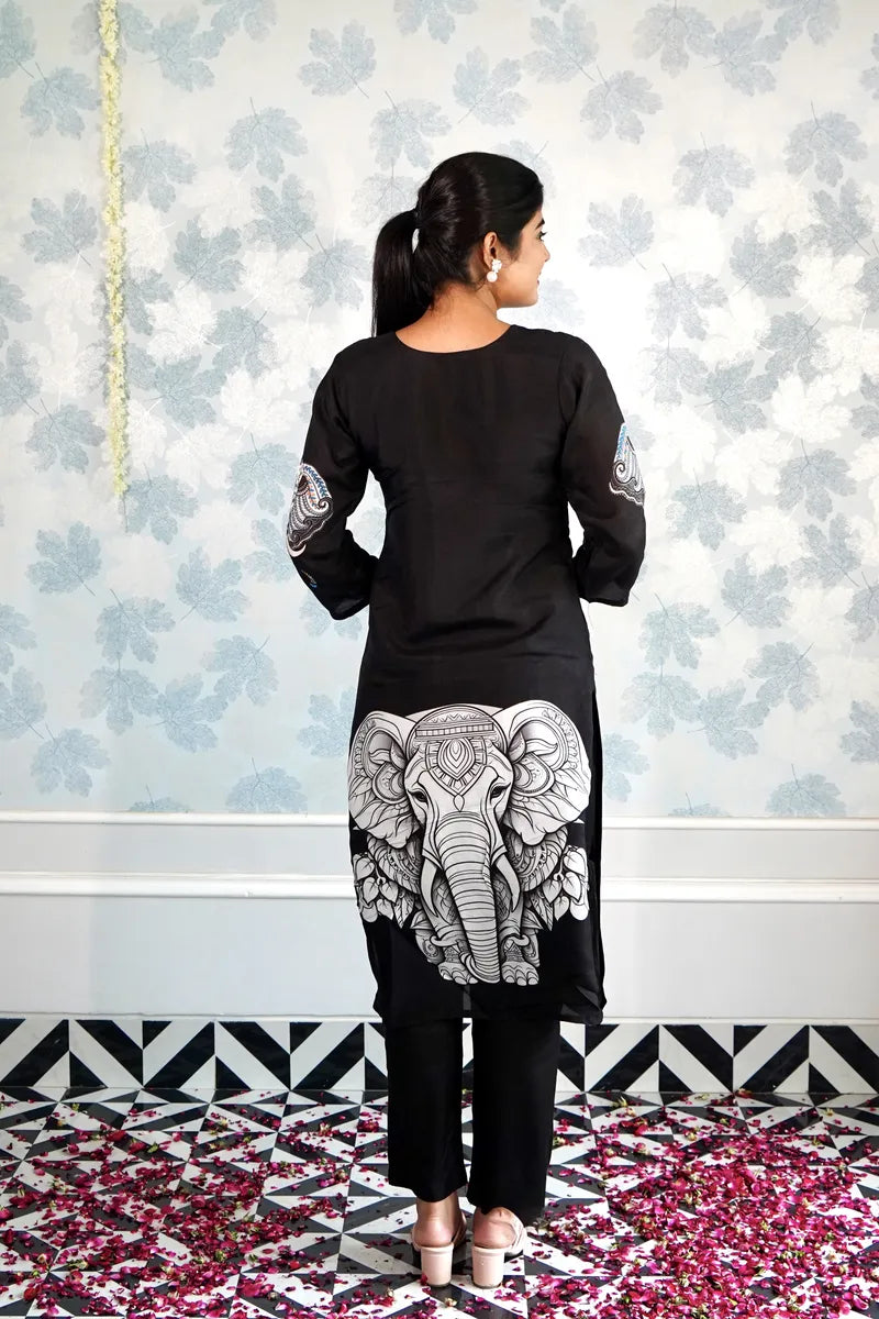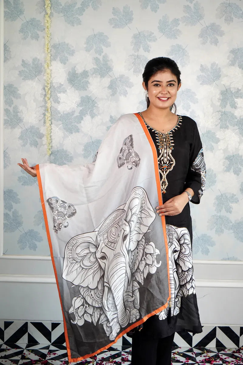 ROYAL GRACE – BLACK ENSEMBLE WITH MAJESTIC ELEPHANT ART DUPATTA