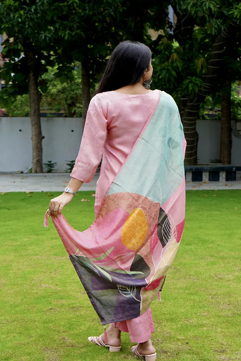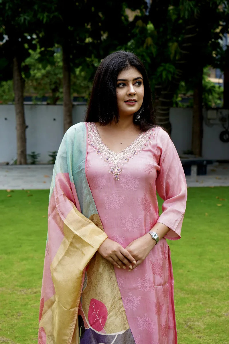 BABY PINK COLOR V NECK KURTI SET