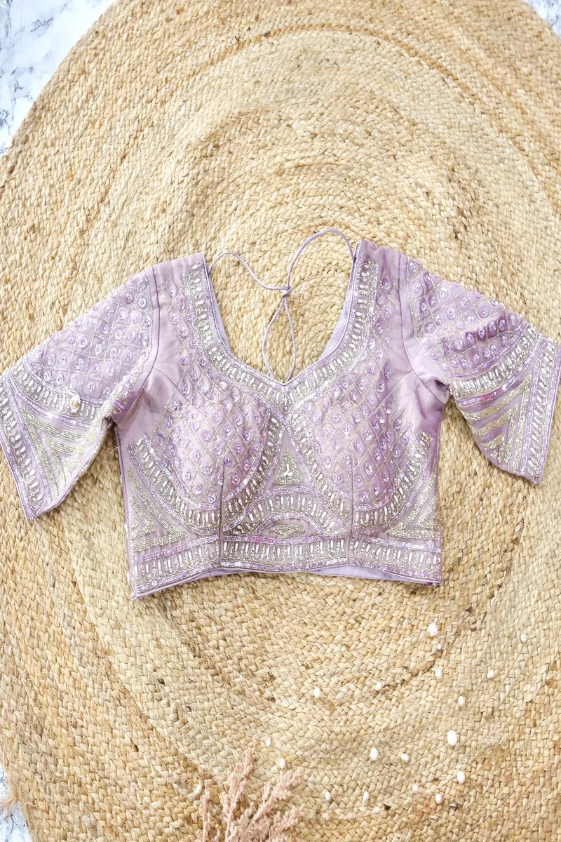 - Saree Details : Saree Fabric: Tissue | Blouse Fabric: Tissue | Saree Work: stone Work Saree With Cutdana Sequence Stone Handwork Border | Blouse Work Heavy Blouse (Stitched )Work | Saree Color: Lavender Color | Blouse Color: Lavender Color