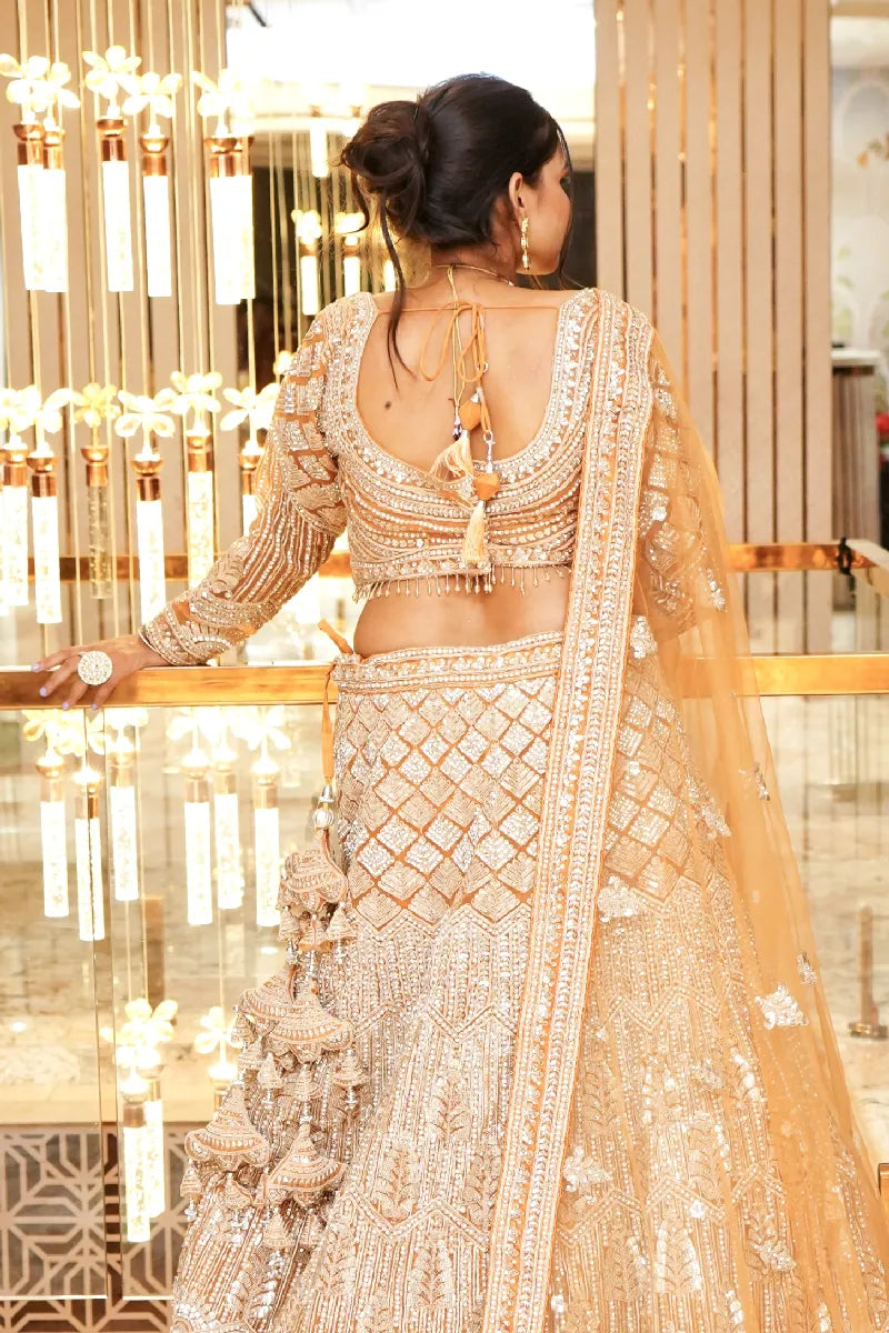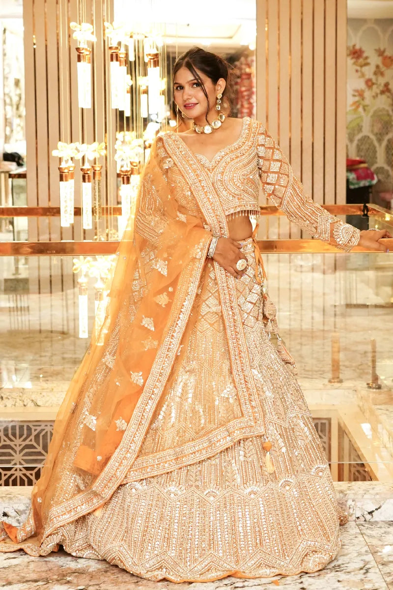 LIGHT ORANGE COLOR THREE PIECES CROP TOP INDO WESTERN