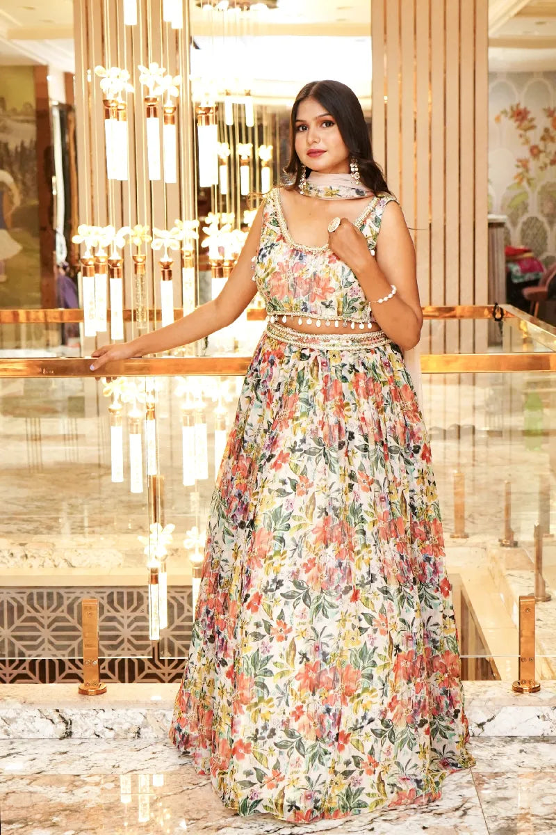MULTICOLOR THREE PIECES CROP TOP INDO-WESTERN