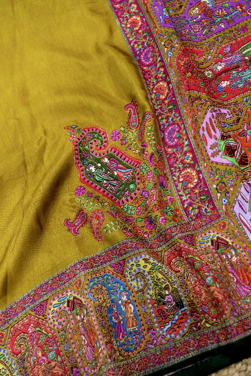 MUSTARD YELLOW COLOR CREPE SILK PASHMINA SAREE