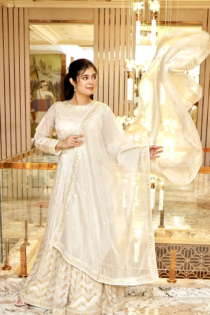 TIMELESS GLAMOUR OFF WHITE COLOR TRADITIONAL GOWN