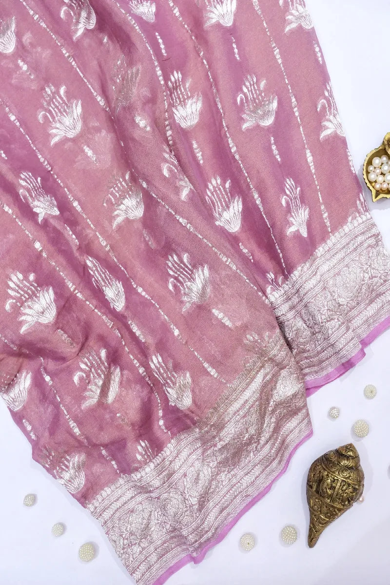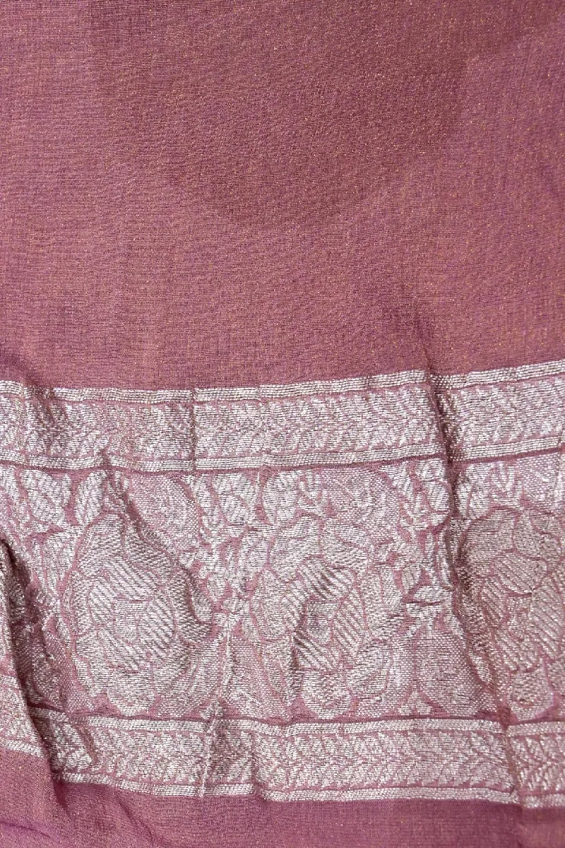 - Saree Details : Saree Fabric: Pure Handloom Khadi Georgette | Blouse Fabric: Pure Handloom Khadi Georgette | Saree Work: Hand Woven Silver Zari All Over Boota Work | Blouse Work:Plain With Silver Zari Border | Saree Color: Pastel Purple| Blouse Color:Pastel Purple