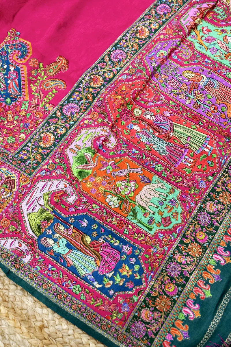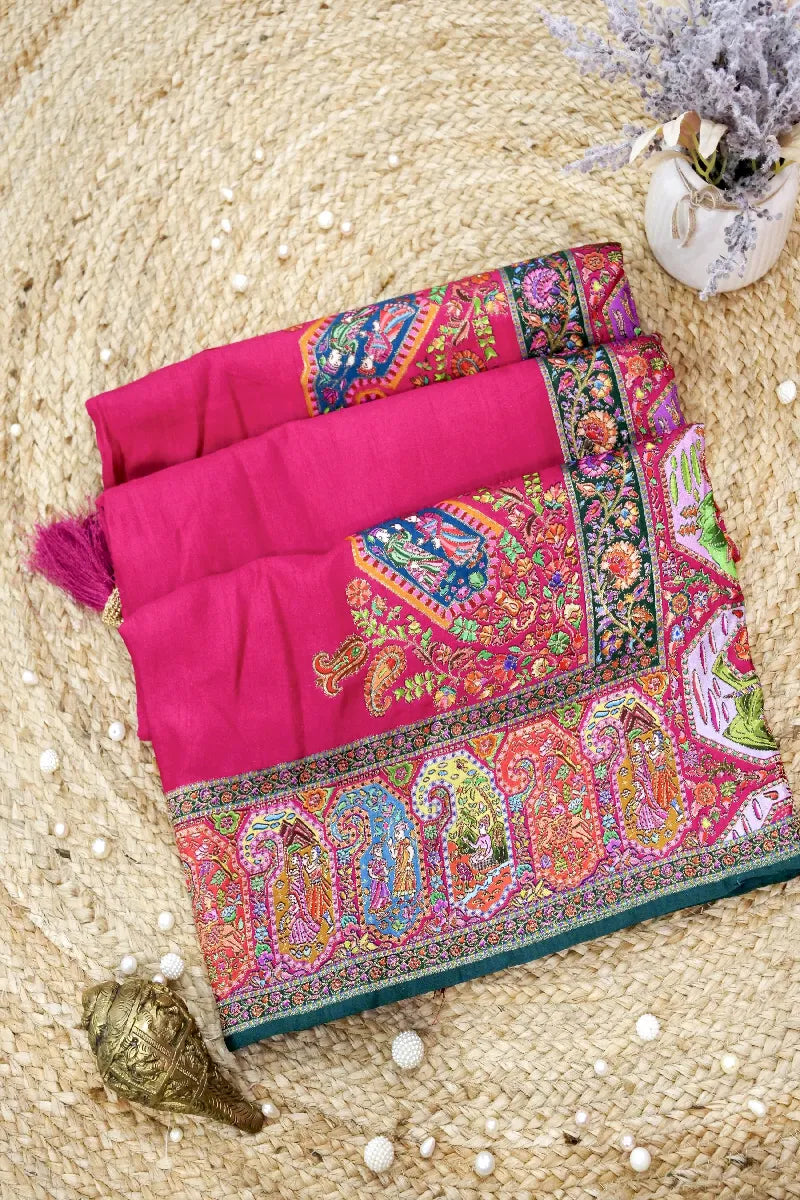 PINK COLOR CREPE SILK PASHMINA SAREE