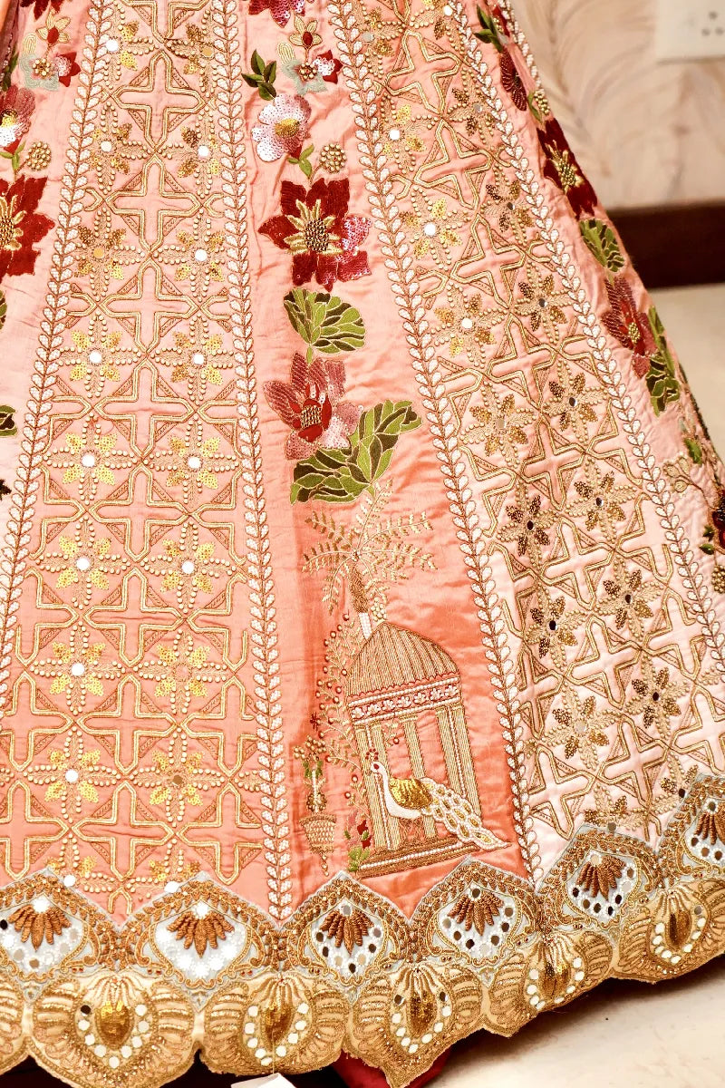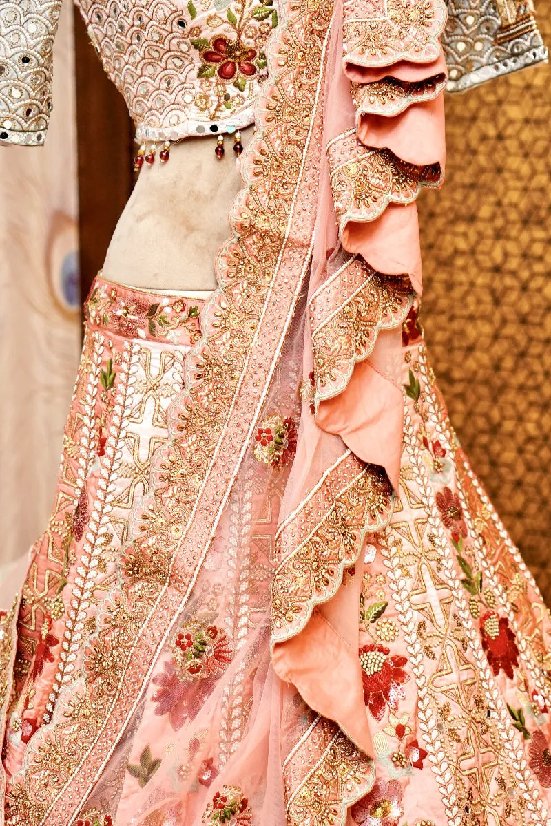 BLUSH PINK BRIDAL LEHENGA WITH MODERN FLAIR FULL HAND RESHAM PEARL WORK