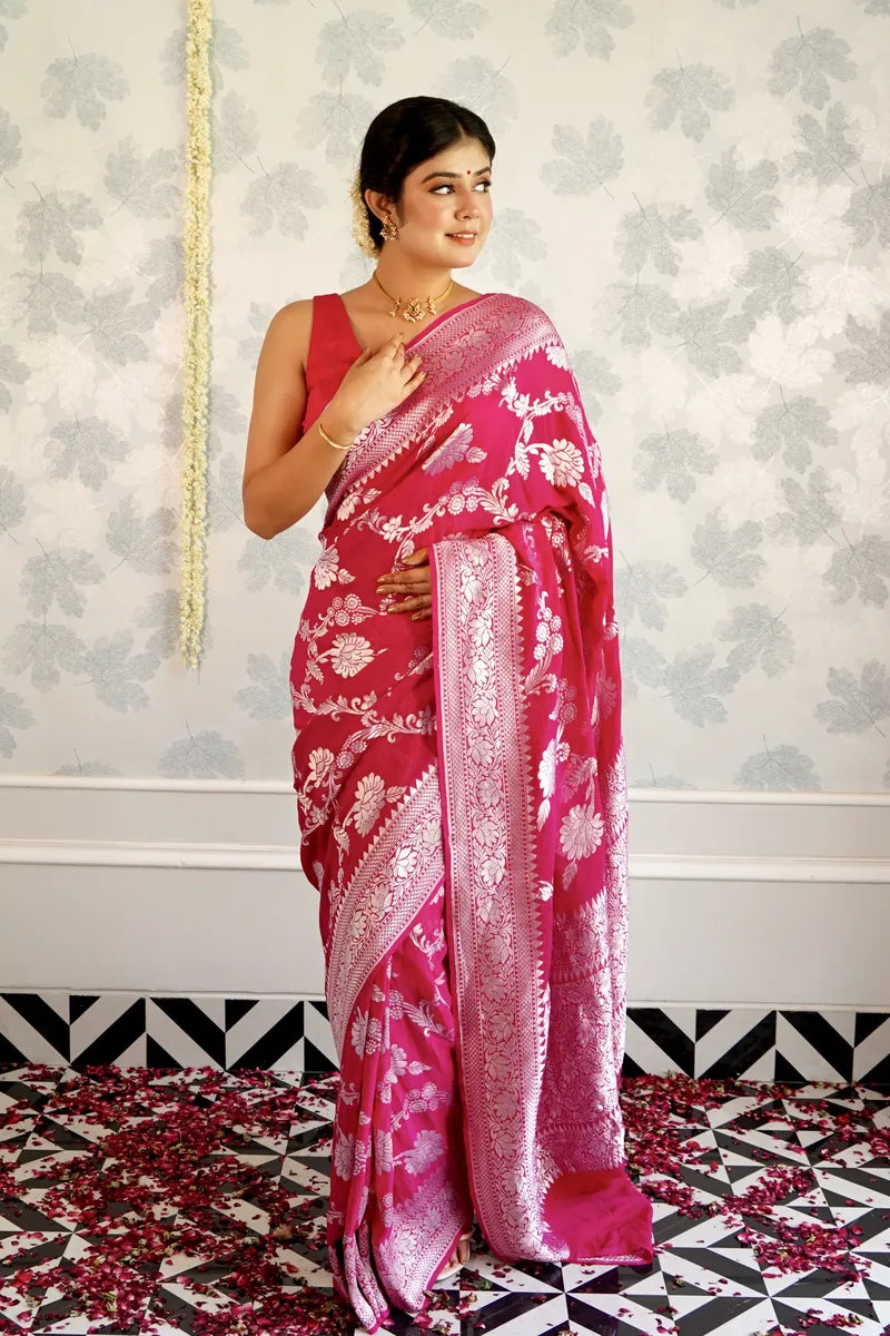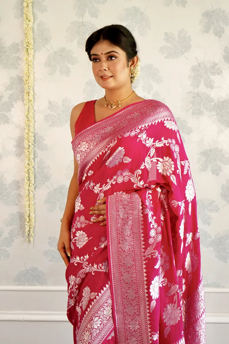 DESIGNER KHADDI GEORGETTE SAREE IN MAGENTA WITH SILVER ZARI